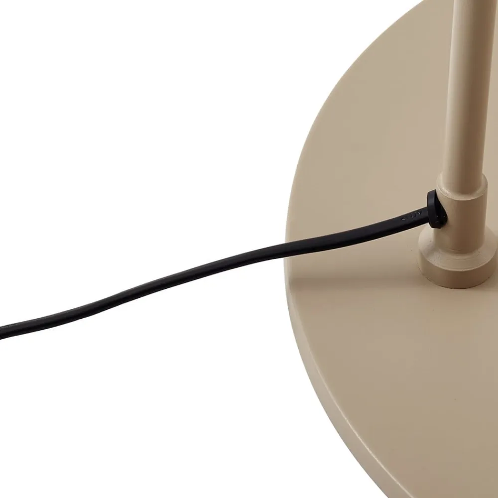 Lindby gulvlampe Triangolo i naturlig beige kombinerer moderne design med praktisk fleksibilitet. Den er fremstillet af metal i høj kvalitet og passer perfekt ind i moderne stuer og tilbyder en stilfuld belysningsløsning. Den diskrete farvekontrast mellem beige og den hvide inderside af den kegleformede skærm skaber et behageligt lys, der stråler nedad.