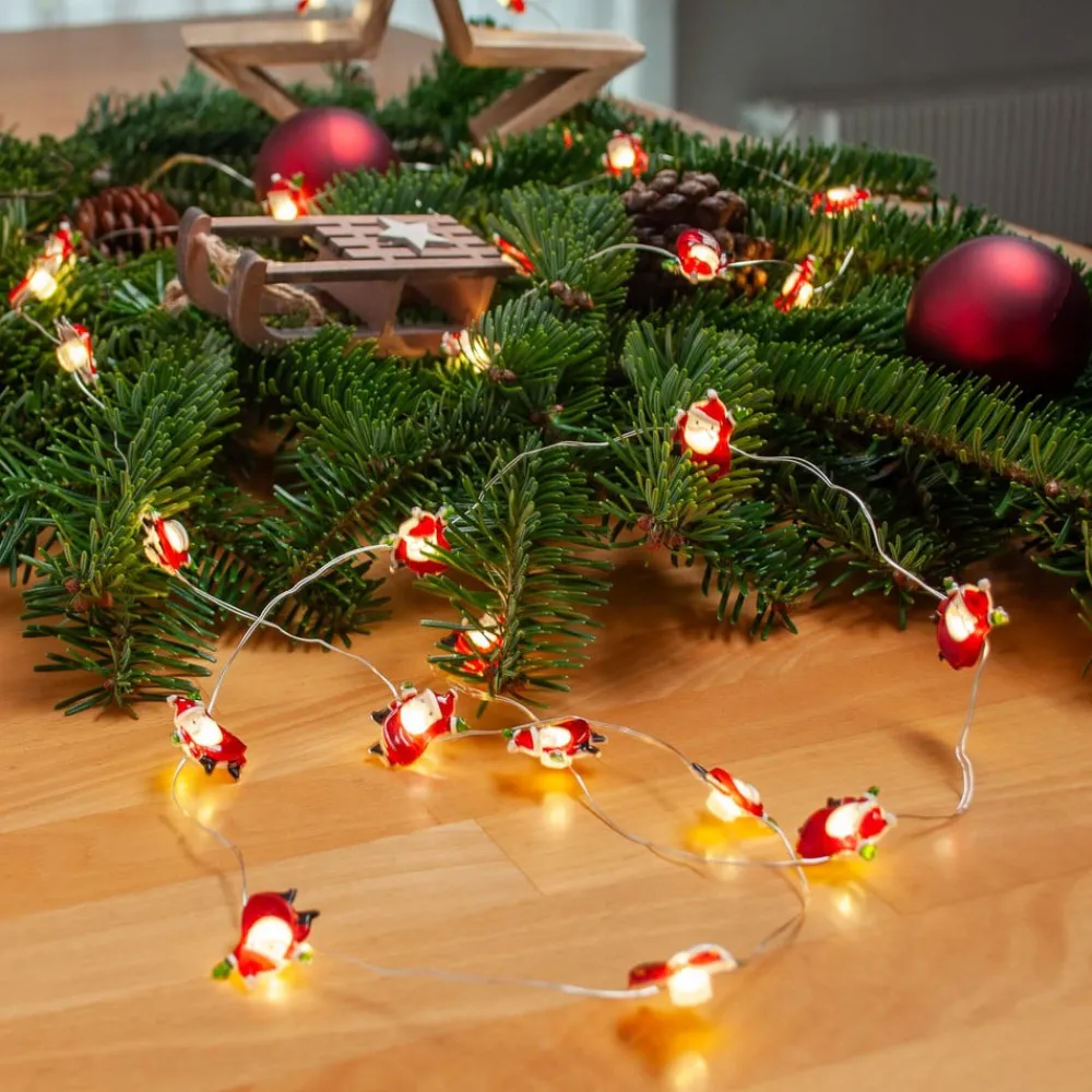 Motje LED-lyskæde med julet look – perfekt som trædekoration Den rigtige belysning er afgørende for at skabe den rigtige feststemning. Motje er en LED-lyskæde med et julet look, som skaber den helt rigtige stemning. Den har 30 lyskilder i form af små julemandsfigurer og er ideel til at pynte et træ med. Motje er også batteridrevet (medfølger ikke) og kan placeres fleksibelt uden behov for en stikkontakt.