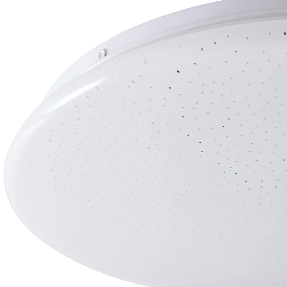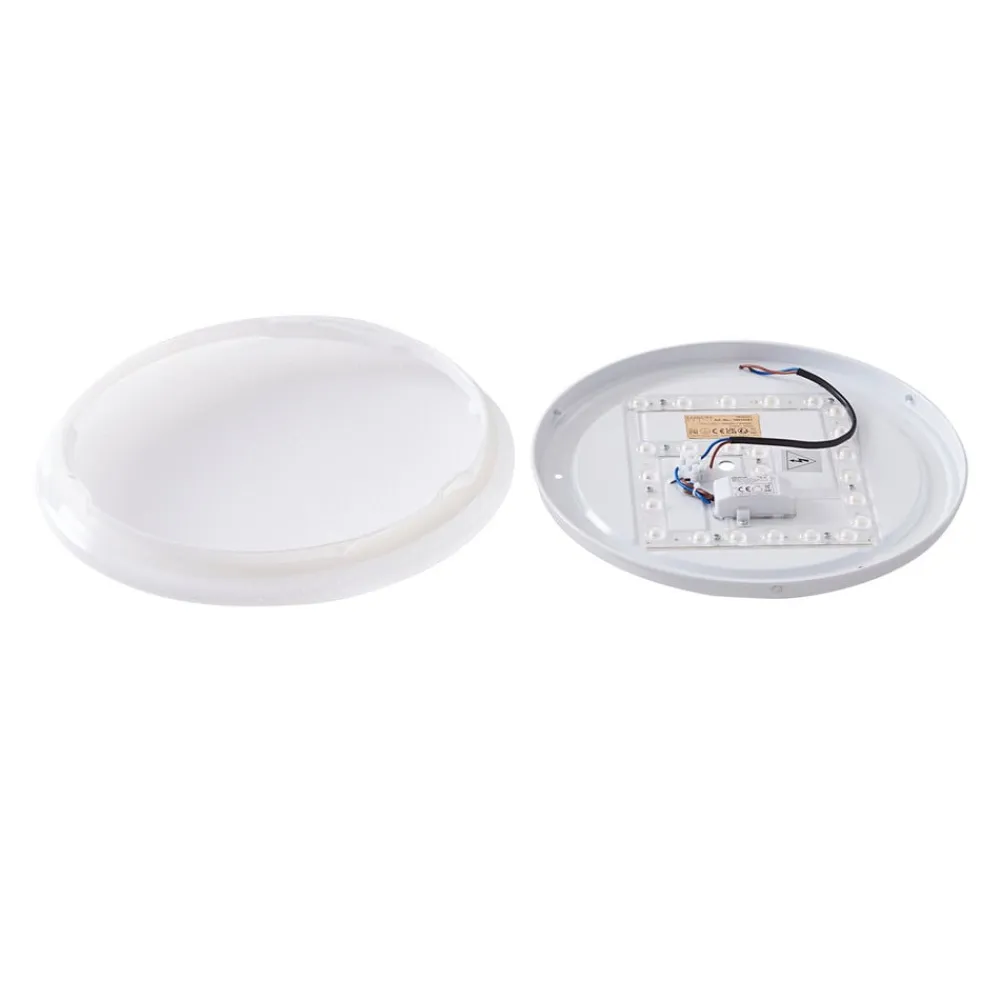 LED-loftlampe Eovi med IP44-beskyttelse, lysfarve universalhvid 4.000 K Enkelt designet og helt hvid passer LED-loftlampen Eovi ind i ethvert interiør og kan også installeres på badeværelset eller i andre vådrum takket være kapslingsgraden på IP44. De indbyggede LED’er udsender en ensartet og behagelig universalhvid lysfarve (4.000 K) gennem den buede skærm af plast.