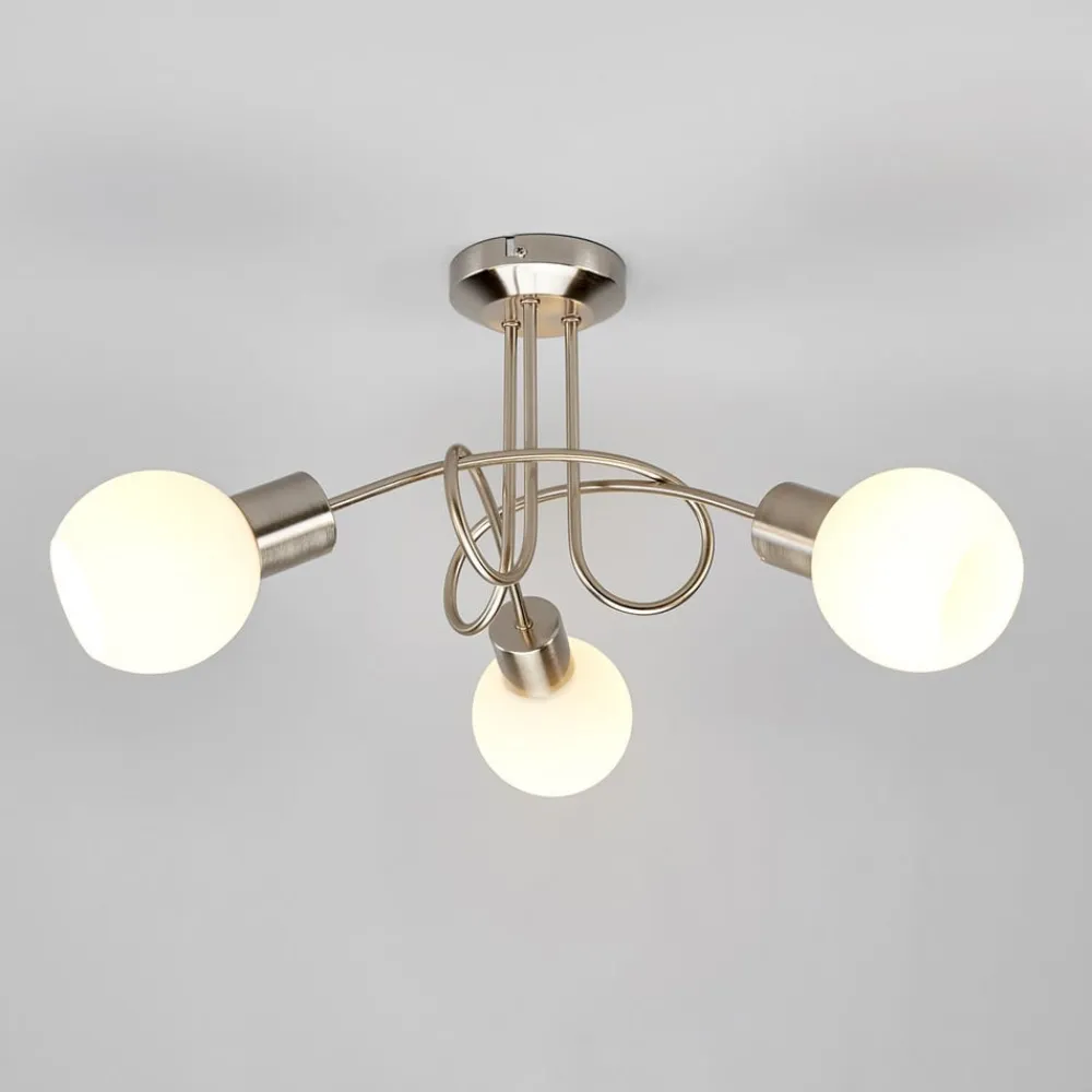 Lindby Gang|Loftlamper>loftlampe Elaina, Ø 38cm, 3 lyskilder, nikkel, glas, E14