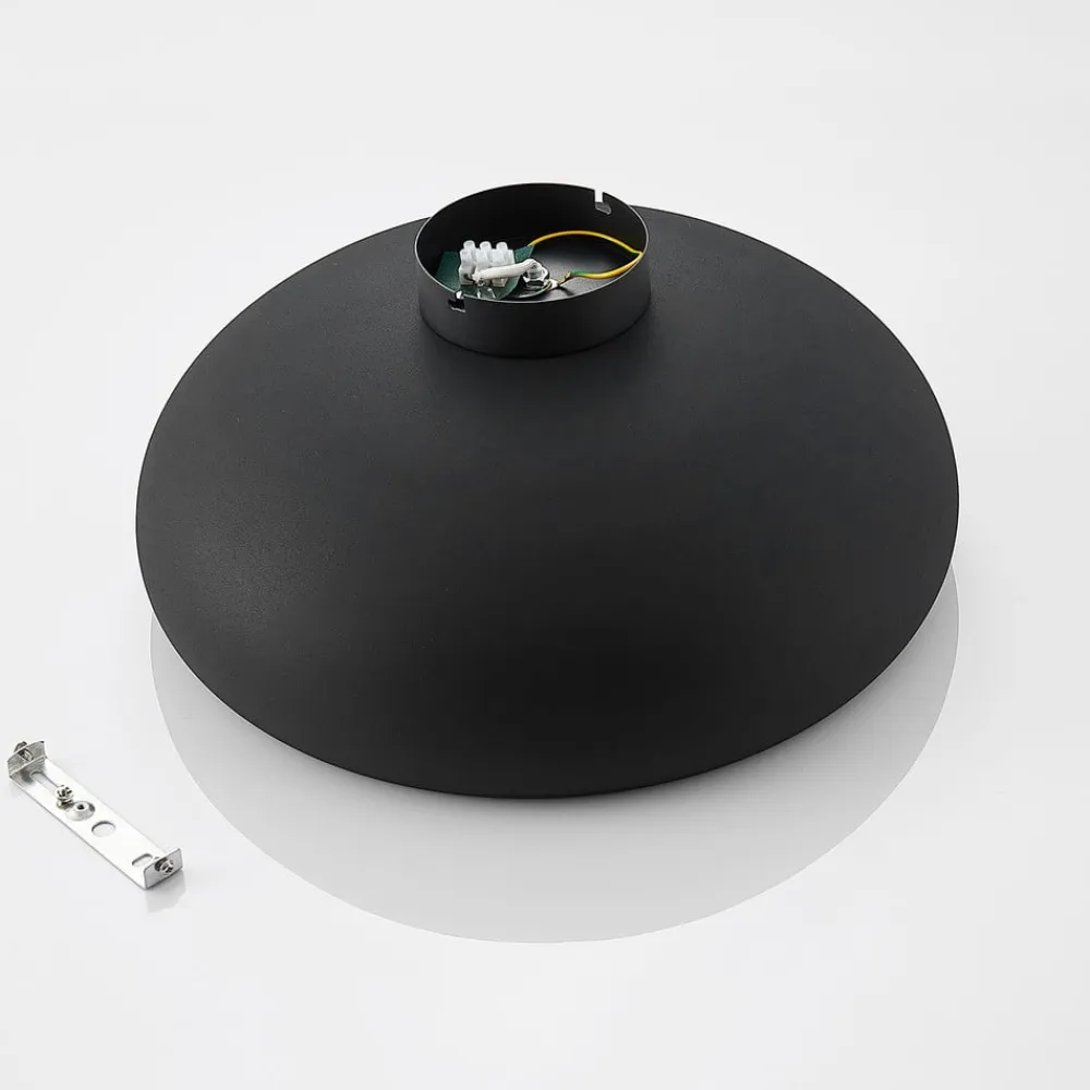 Rund loftlampe i metal Gerwina med gylden indvendig finish for smukt lysudslip Gerwina er en loftlampe, der er perfekt til indendørs brug, hvor den oplyser gange, soveværelser og opholdsrum lige godt. Skærmen, som er åben i bunden, er pæreformet og rund og har en sort yderfinish, mens indersiden er tonet i mat guld. Kontrasten skaber ikke kun et smukt look, som har været absolut trendy i nogen tid nu, men også et varmt, hyggeligt lysmønster, fordi lyset reflekteres så smukt af guldtonen. Skærmens åbenhed understreger også lyskilden og bør vælges med omhu. Rustikke lamper eller filamentpærer, som er udtryk for en klassisk glødepære, og som nu også fås med ekstra varme lysfarver og effektiv LED-teknologi, ser meget stilfulde ud.
