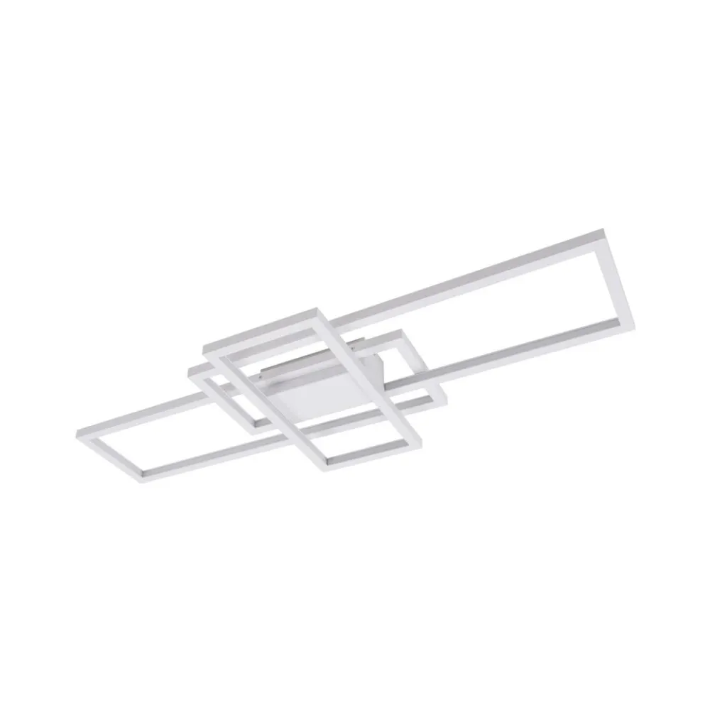 Poppy LED-loftlampen er en ideel løsning til moderne rum, for lampen har ingen runde former og er holdt i et fuldstændigt retlinet look. Den består af tre lysende rammer, der alle er lavet af aluminium og er forsynet med en hvid finish. Du justerer hurtigt lysstyrken i tre trin via vægkontakten, så du både opnår et lysere lysskær og en hyggebelysning så du kan koble fra og slappe af.