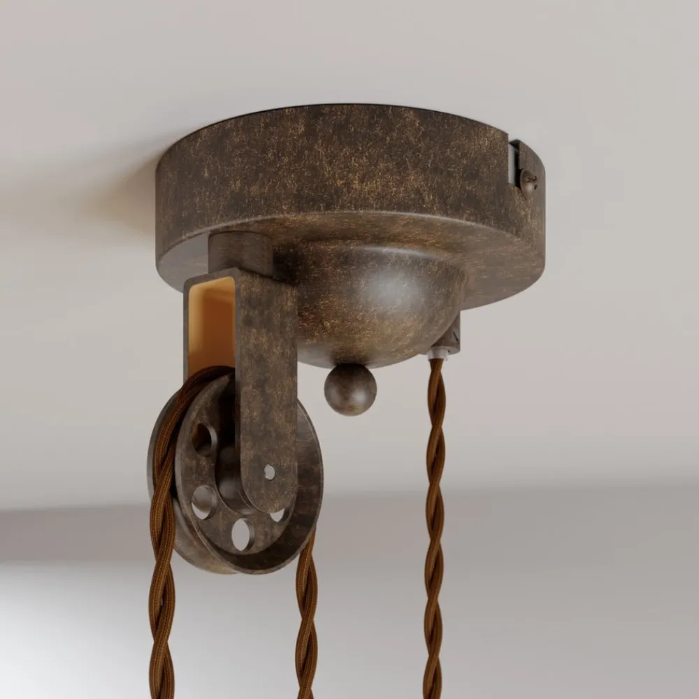 Brun højdejusterbar pendellampe med rebtræk Louisanne med rustikt udseende