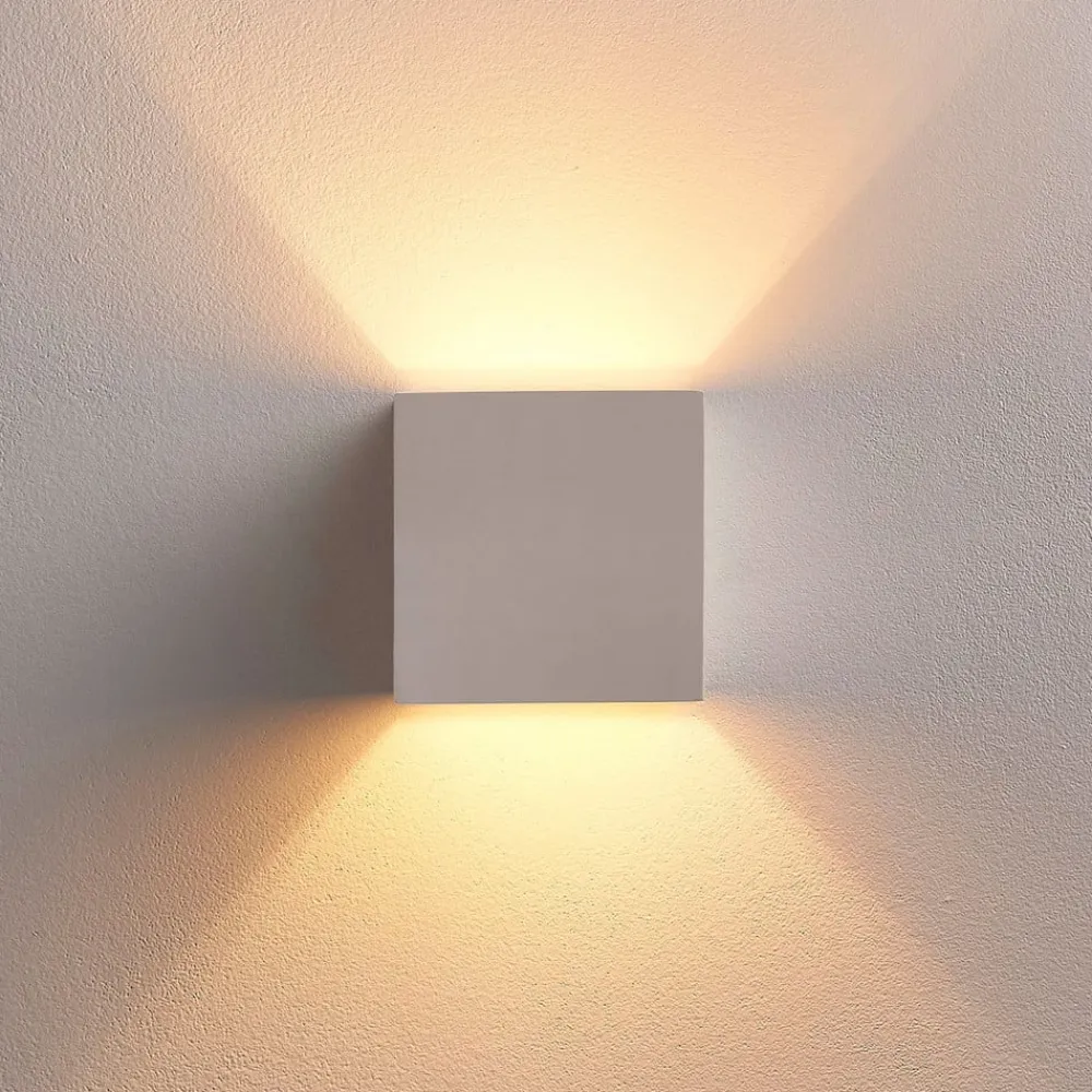Lindby væglampe Kay, hvid, gips, 11,5 x 11,5 cm