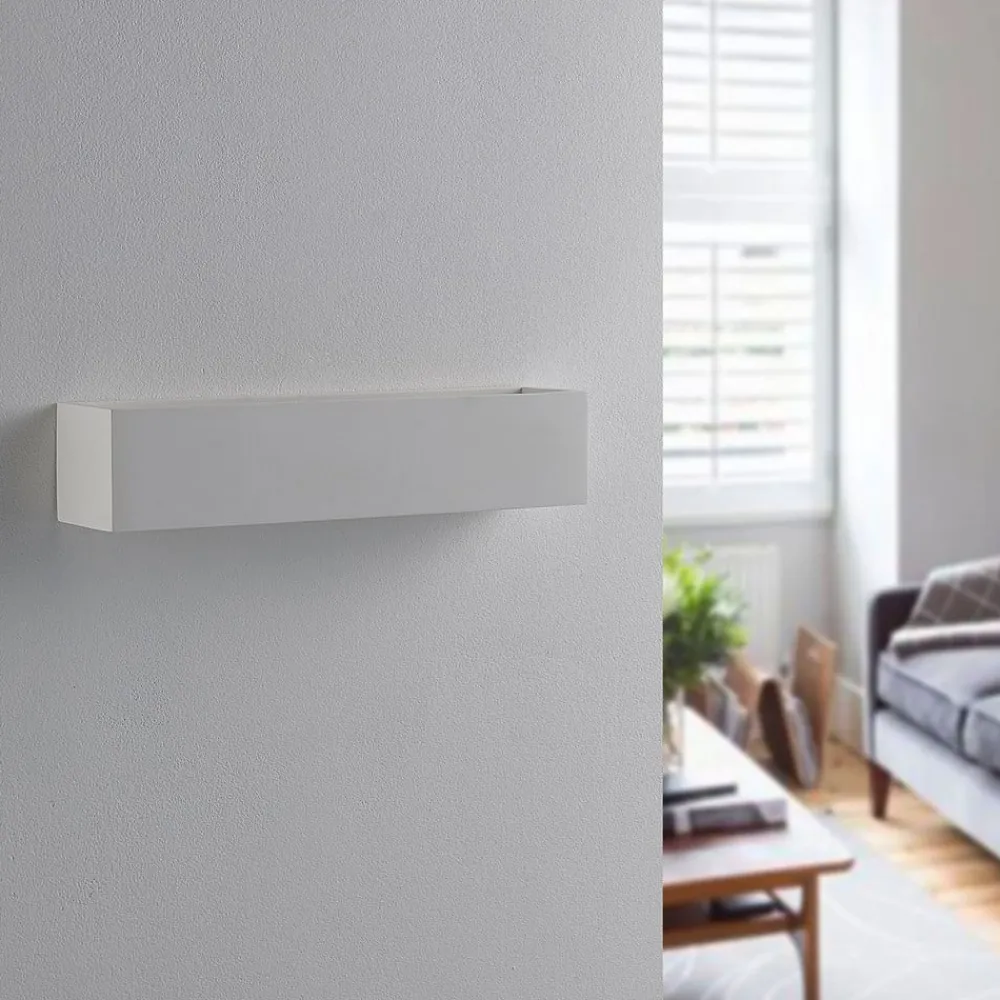 Tjada kantet gipsvægslampe i tidløs hvid Gipsvægslamper har nydt stor popularitet i et stykke tid nu. Den harmoniske hvide overflade er helt sikkert en af grundene til dette, men bestemt ikke den eneste. Men hvis du synes, at hvid er kedelig eller har andre grunde til det, kan du også male overfladen eller give den en anden farve, f.eks. ved at male den. Lyset slipper ud på en hjemlig måde og bidrager dermed til et hyggeligt udseende, som kan forstærkes yderligere ved at dæmpe pærerne.