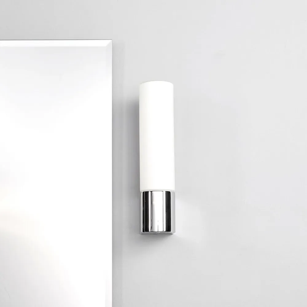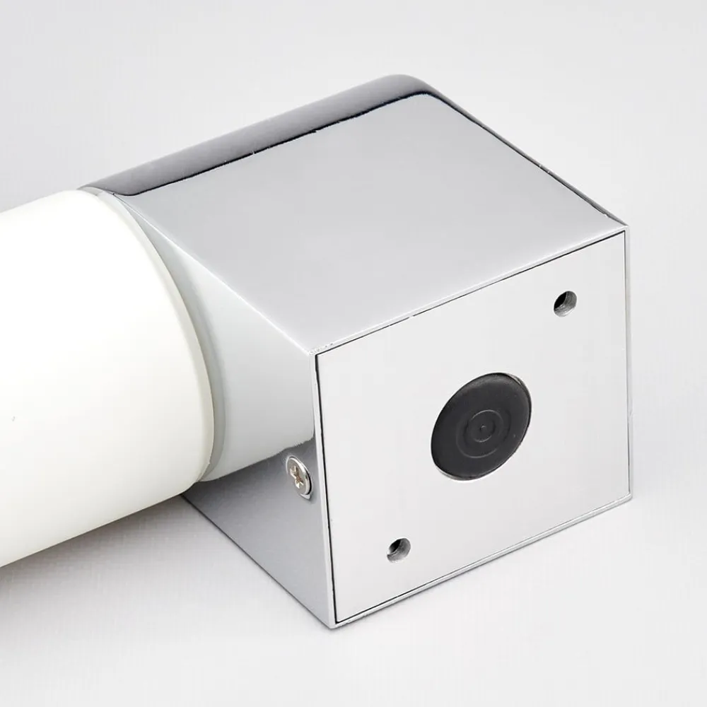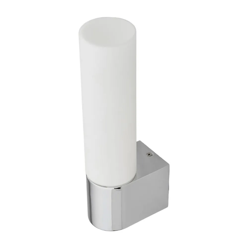 Med stikkontakt – Melike spejllampe Især små badeværelser er taknemmelige for enhver pladsbesparende løsning. Man står ofte over for det problem, at der ikke er nok tilslutninger til stikkontakter og belysning. Melike væglampen slår to fluer med et smæk og er det perfekte valg, når det drejer sig om en lyskilde ved siden af spejlet. Det skyldes, at der er en stikkontakt på undersiden af den blanke, forkromede ramme. Den er godt dækket af en klap, så man ikke kan se den, når den ikke er i brug, og den forringer ikke lampens overordnede udseende. Samtidig er Melike også en stilfuld lyskilde, der imponerer med sit stilfulde design. Selve lyskilden, en traditionel glødepære, er omgivet af en cylindrisk glasskærm, som sikrer en blød lysfordeling. Placeret til højre og venstre for et spejl giver Melike-armaturet et skarpt lys og tilbyder det lille ekstra med sin integrerede fatning.