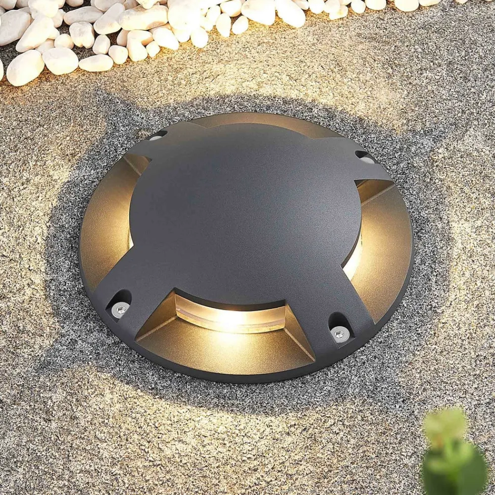 Lindby gulv-spotlight med LED Cormac, 4 lyskilder, Ø 21 cm, IP67