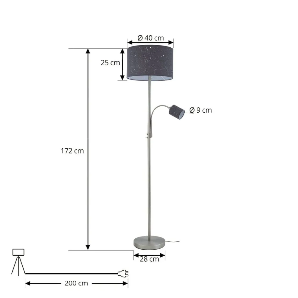 Lindby gulvlampe Jaileen, grå, tekstil, 170 cm, læselampe