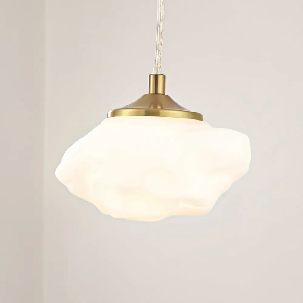 Lindby hængelampe Piatra, opal/messing, glas, Ø 16 cm, G9