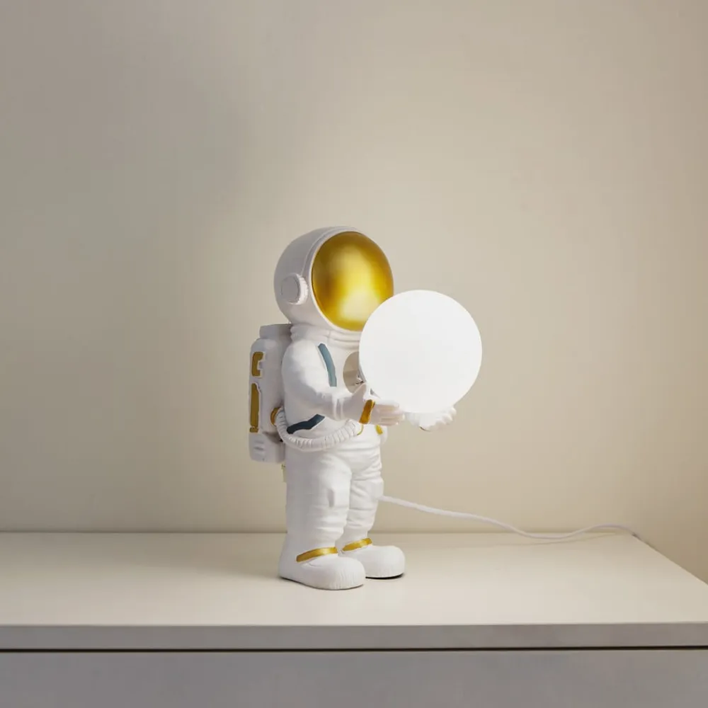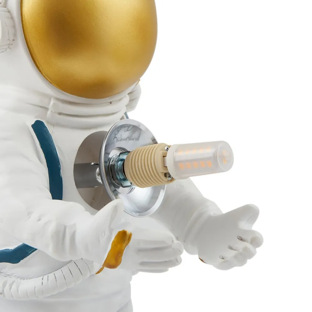 Kosmo bordlampe i astronautlook – den kreative følgesvend til den unge bolig eller børneværelset Oplev Kosmo bordlampen, et højdepunkt til ethvert rum, der ikke kun imponerer med sit unikke keramik- og glasdesign, men også med sin evne til at skabe atmosfære. Den stilfulde kombination af ungdommelig charme og moderne elegance gør denne lampe til et alsidigt tilbehør til soveværelser, børneværelser, spisepladser og stuer. Oplev, hvordan Kosmo bordlampen sætter accenter med sit bløde lys og skaber en stemning, der spænder fra inspirerende til beroligende.