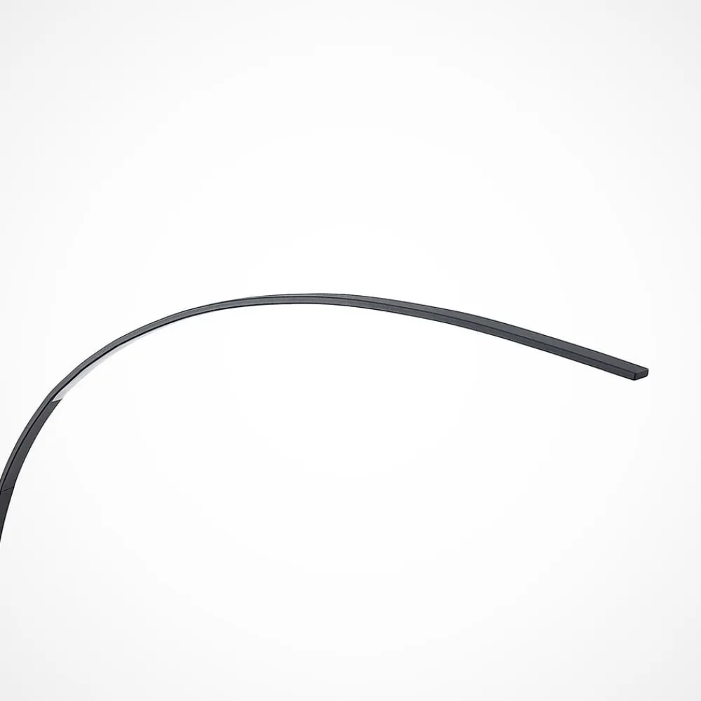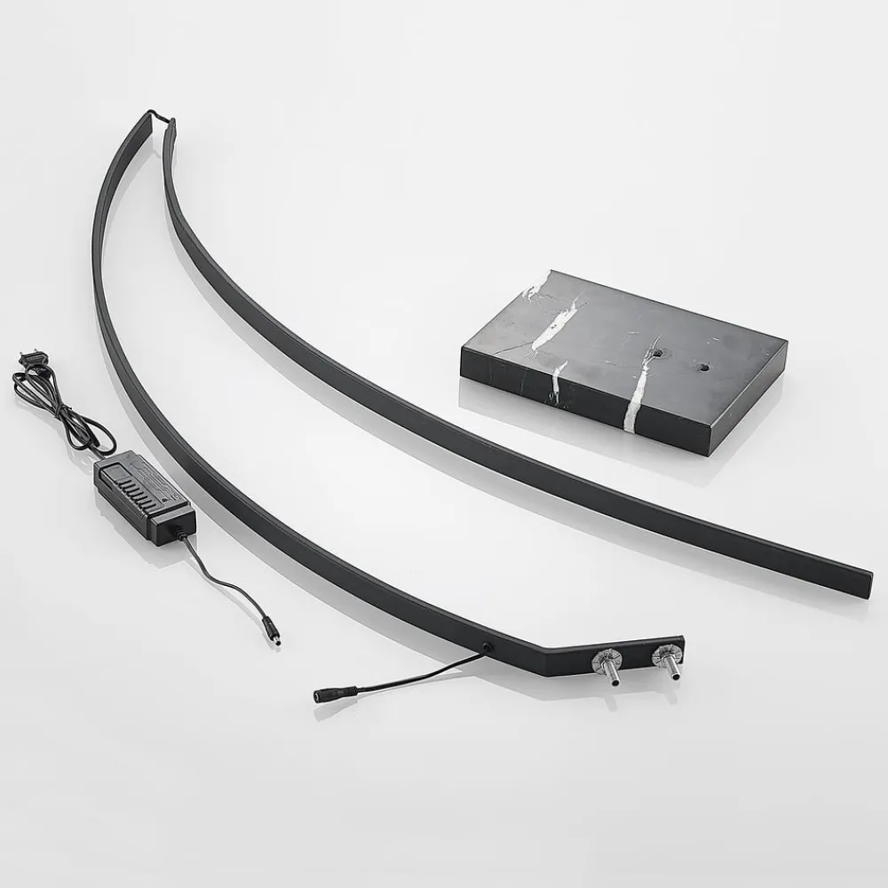 Kendra buet LED-gulvlampe med sort overflade og minimalistisk look, integreret dæmper? Med sit minimalistiske design passer Kendra perfekt ind i moderne interiører og opfylder også de nyeste tekniske standarder, da den drives med energieffektiv LED-teknologi. Der er også integreret en foddæmper, så lysstyrken kan justeres præcist. Den buede form gør Kendra-gulvlampen til en lyskilde, der kan placeres ved siden af eller bag en sofa, da foden så kan placeres længere tilbage, men lyset stadig når et fremtrædende sted. For et fast og sikkert greb er lampefoden lavet af tung marmor og vælter ikke så let. ?