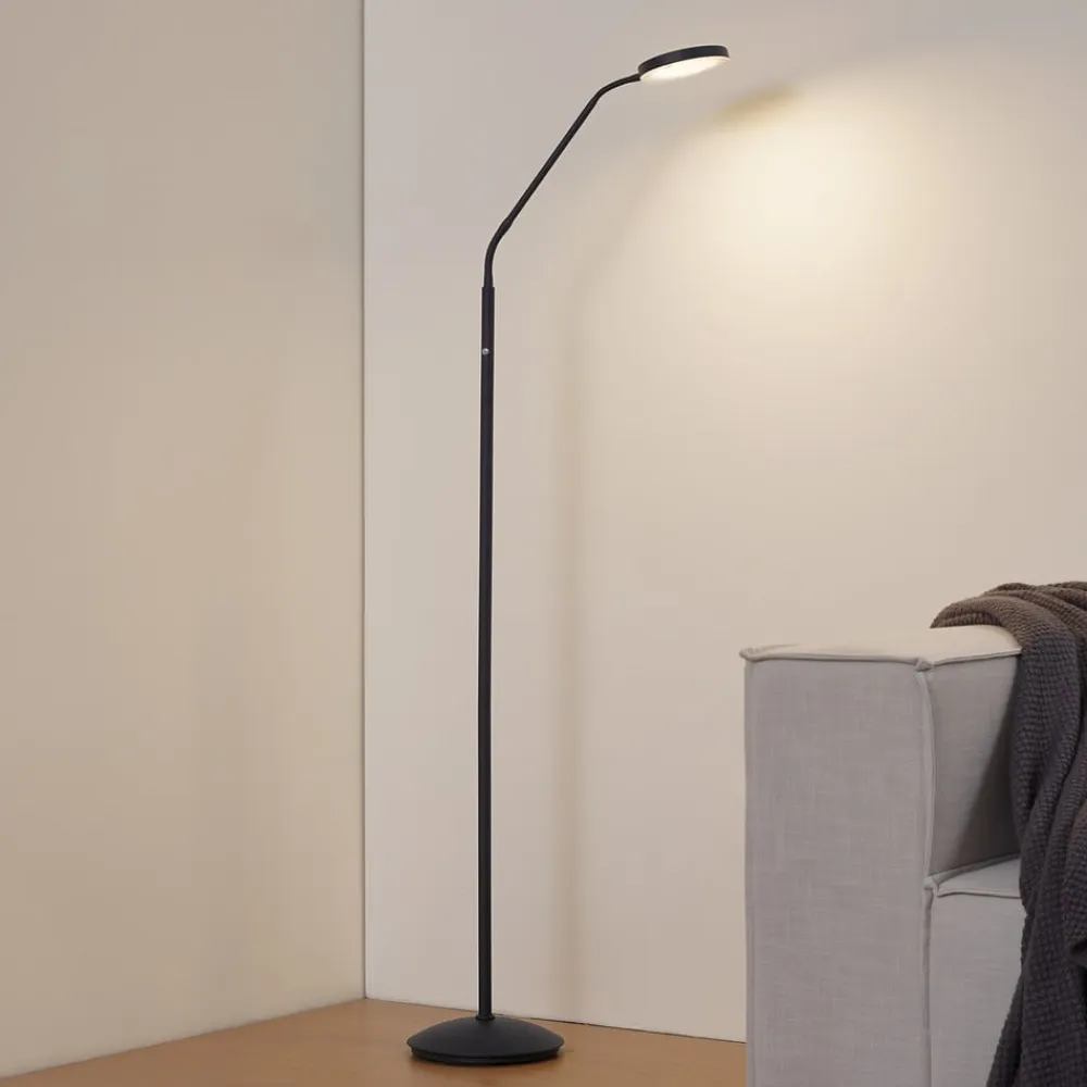 Et særligt træk ved denne gulvlampe er dens højdejustering og det integrerede batteri, der kan oplades via det medfølgende USB-kabel. Disse egenskaber gør det muligt at tilpasse lampen individuelt og giver maksimal fleksibilitet. Den medfølgende dæmper giver ekstra kontrol over lysintensiteten, så belysningen kan tilpasses de aktuelle behov. Betjeningen foregår via den lille kontakt på stangen.