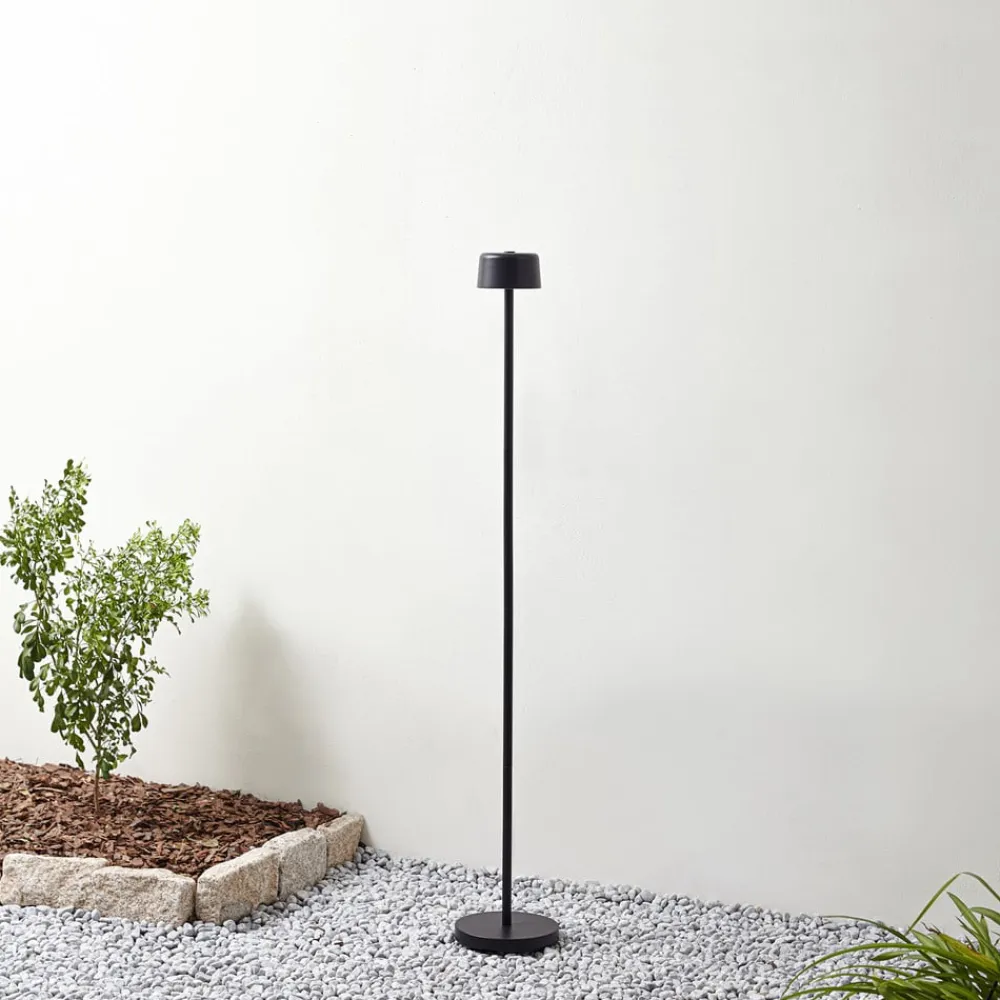 Isason LED-gulvlampe med praktisk dæmpningsfunktion Isason LED-gulvlampe i sort design kombinerer moderne æstetik med praktisk innovation. Som et stilfuldt belysningselement til altaner og terrasser tilbyder denne gulvlampe ikke kun en integreret LED-lyskilde, men også fleksibiliteten ved batteridrift. Den integrerede touch-dæmper gør det muligt at justere lysstyrken intuitivt for at skabe den rette atmosfære til enhver situation – fra et blødt skær til kraftig belysning. Lampens moderne stil passer perfekt ind i moderne udendørsarealer og understreger stemningen med sin enkle elegance. Tekniske data – inkl. 3,7V 2000mAh Li-ion-batteri – batteriets opladningstid 3 timer – batteriets levetid 4 timer – inkl. USB-C-kabel
