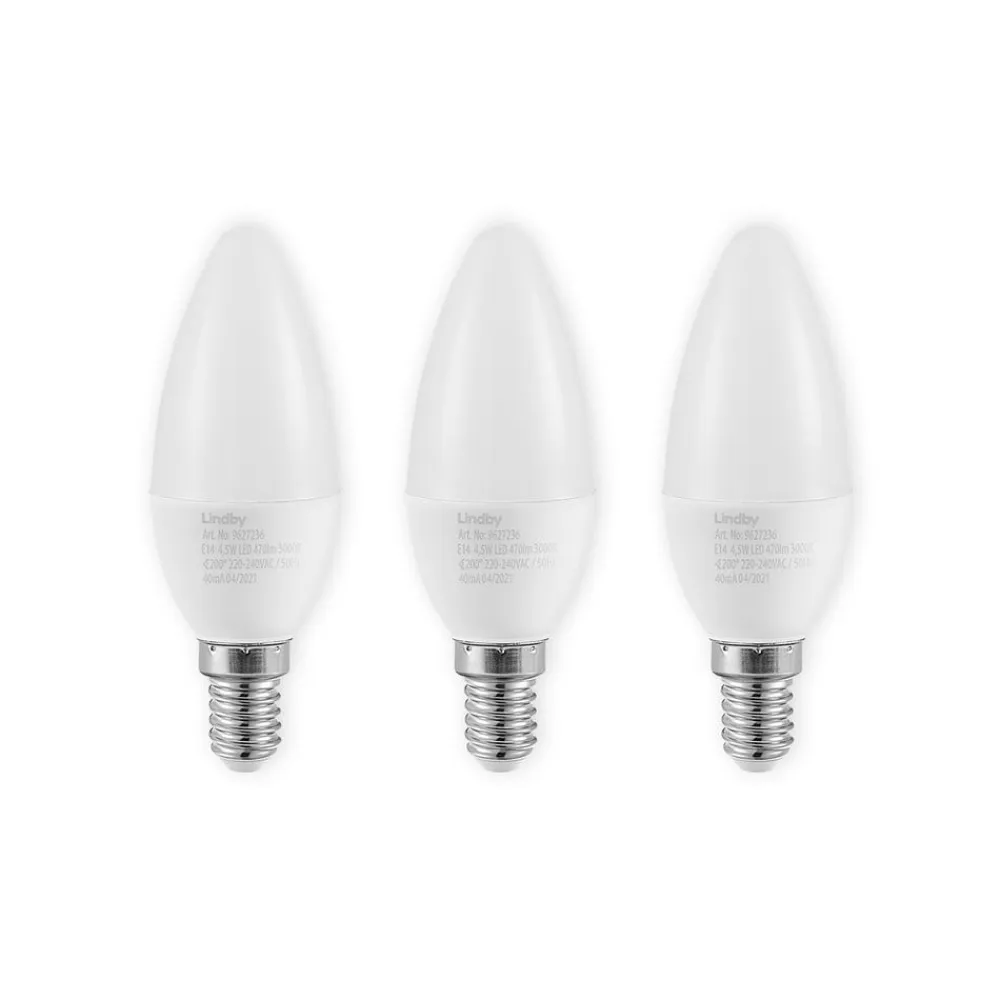 Lindby LED-kertepære, E14, C35, 4,5W, opal, 3000K, sæt med 3 stk