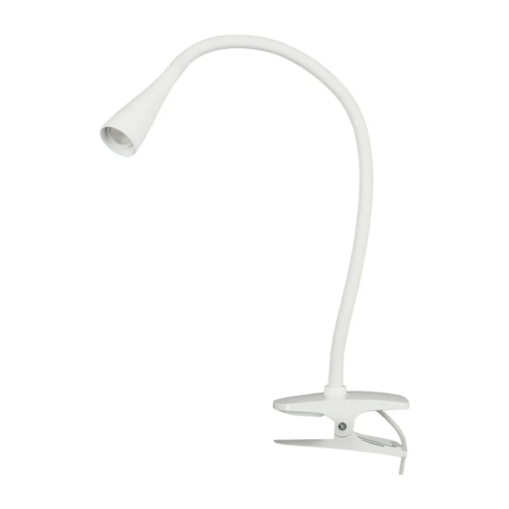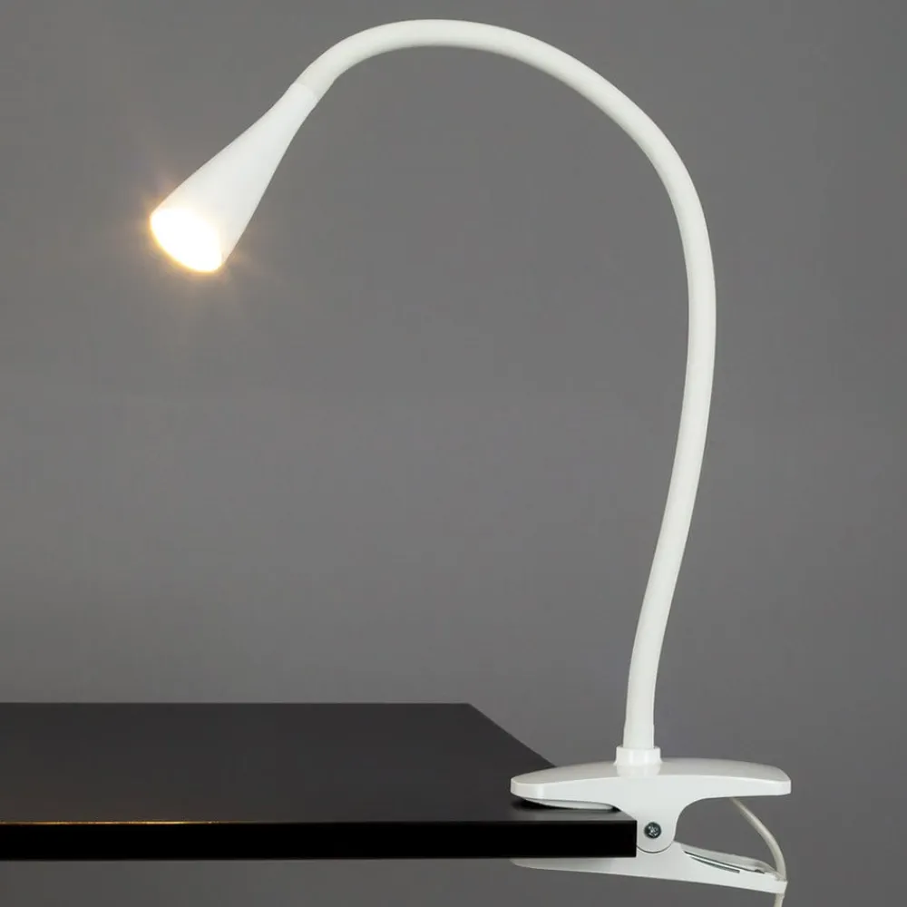 Energieffektiv LED-klemmelampe Baris i et slankt design Bordlamper og skrivebordslamper er en praktisk ting, men nogle gange er der simpelthen ikke plads nok til en konventionel fod. I så fald anbefaler vi klemmelamper, der hurtigt og nemt kan klemmes fast på kanten af et bord, en hylde eller lignende, hvor de så sidder sikkert fast og helt sikkert ikke vælter. Dette eksemplar med indbygget LED-modul er kendetegnet ved en slank ramme og et lige så diskret lampehoved med en lille diameter. Stangen kan justeres fleksibelt i alle retninger for optimal lysretning, men designet gør det også muligt at skabe indirekte lys, når lampehovedet f.eks. rettes mod loftet.
