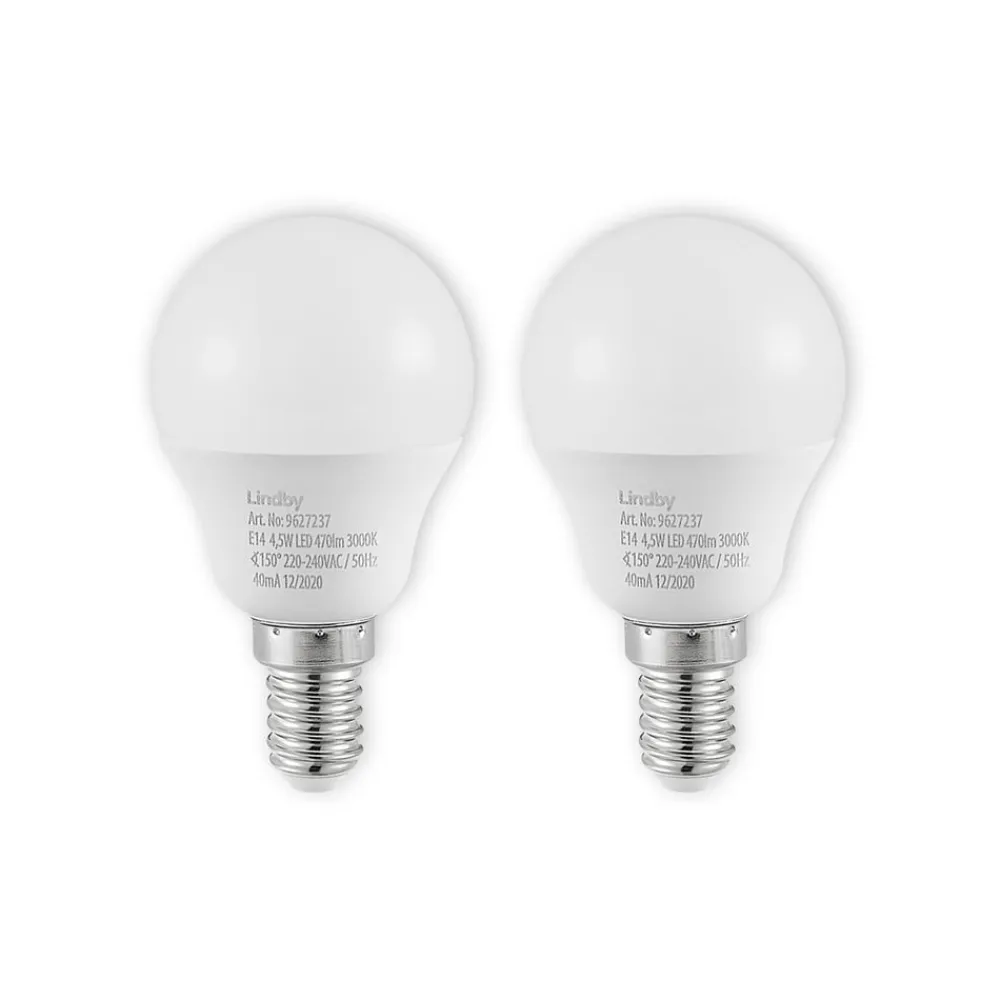 Lindby LED-pære E14 G45 4,5W 3.000K opal sæt med 2 stk