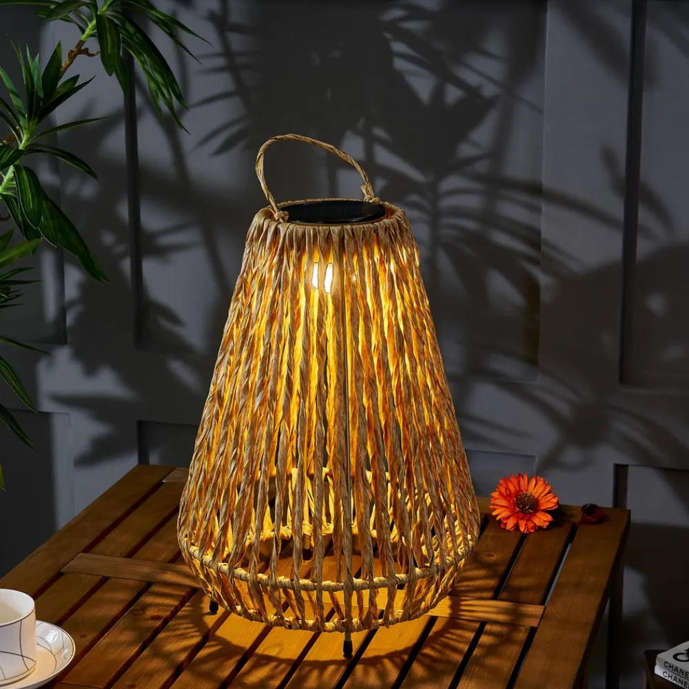 Amaria LED-solcellelampe til terrassen med lysdæmper er fremstillet af rattan. LED-solcellelampen til terrassen er fremstillet af lys rattan og er en stilfuld mulighed for udendørs belysning. Med sit varmhvide lys og dæmpbare indstillinger skaber lampen en hyggelig atmosfære på terrassen eller i haven. Det integrerede solcellepanel giver mulighed for hurtig og nem batteriopladning, og det medfølgende USB-kabel kan bruges til at genoplade i en snæver vending. Terrasselampen er lavet af lys rattan og har et naturligt look. Med sit stilfulde design passer LED-solcellelampen i lys rattan perfekt ind i dit terrassedesign – inkl. 3,7 V Li-Ion-batteri – inkl. USB-C-kabel – batterilevetid 6 timer
