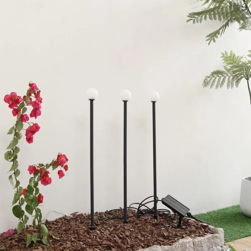 Lindby LED-solcellelampe Freydis, sæt med 3, sort, 2.000 K