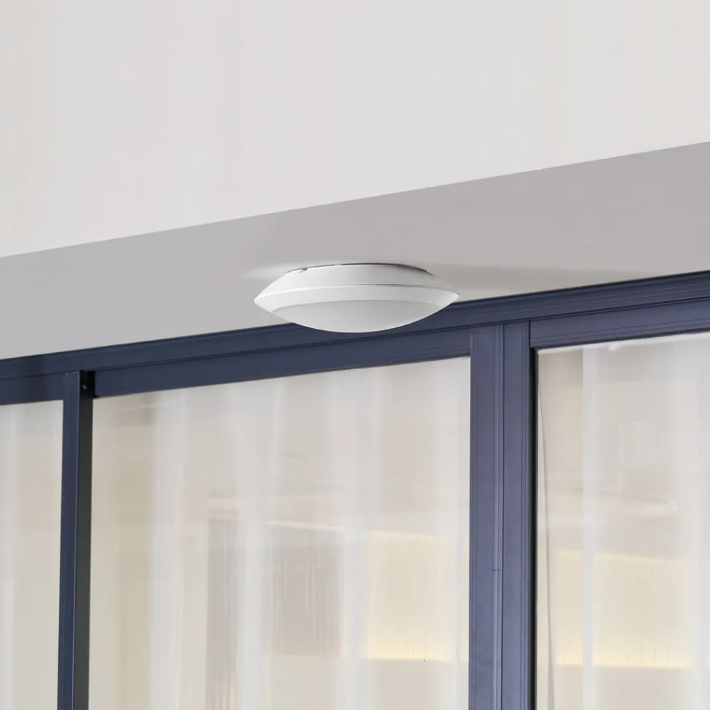 Rund, hvid LED-loftlampe Naira til udendørs brug, saltvandsresistent, IP65 Naira er en lyskilde med et universelt udtryk, der kan bruges næsten overalt udendørs under baldakiner (husets indgang, terrasser, altaner osv.). Huset er ikke kun robust (slagfasthedsklasse IK06), men også enkelt med sin runde form og hvide overflade. Kapslingsgraden IP65 giver også et højt niveau af beskyttelse mod snavs og vand. Gennemføring af ledninger til andre armaturer er mulig under installationen, og det saltvandsresistente hus betyder, at det også kan installeres i nærheden af vandområder med saltholdig luft. Vægmontering er også mulig. Data for bevægelsessensor: – Justerbar skumringsværdi – Justerbar lysvarighed: 5 sekunder/90 sekunder/5 minutter/15 minutter – Rækkevidde 12 meter/6 meter – Registreringsvinkel 30 grader/150 grader