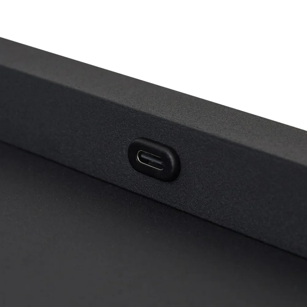 Praktisk, oplyst hylde i form af en LED-væglampe med USB-opladningsport