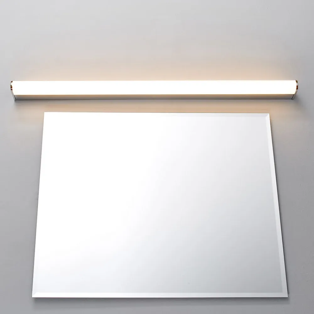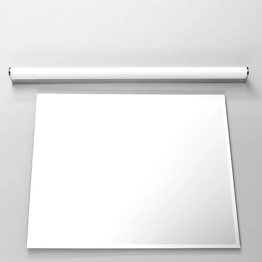 Philippa – LED-væglampe til badeværelset Philippa LED-væglampen er designet til brug på badeværelset, hvor den kan monteres over et spejl for at belyse det og spejlbilledet jævnt. Akryldiffusoren er opalhvid og suppleres af skinnende kromdetaljer i siderne og på bagsiden. Naturligvis er dette et perfekt match til moderne interiør.