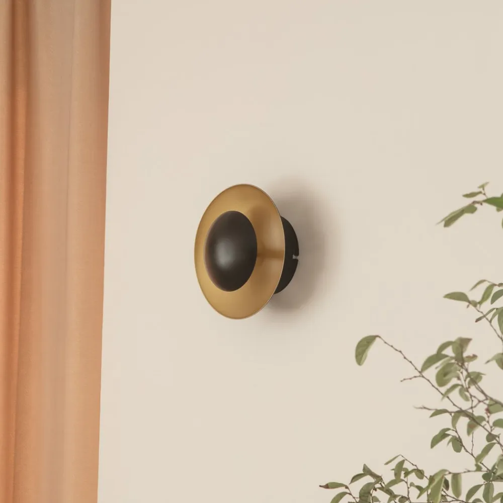 Tiama rund LED-væglampe af jern i sort og guld Denne væglampe bringer hygge til din indretning. Takket være sin smukke stil supplerer væglampen dit personlige indretningskoncept perfekt og er en flot dekoration, selv når den er slukket. Det varmhvide lys giver dit opholdsrum et smukt præg. Uanset hvor den installeres, vil væglampen i farverne sort og guld give dit opholdsrum et mere personligt præg. Det er en stilfuld måde at spotlighte din bolig på, hvilket gør den til et fremragende valg til dit interiør. Lampen gør en god figur både tændt og slukket.