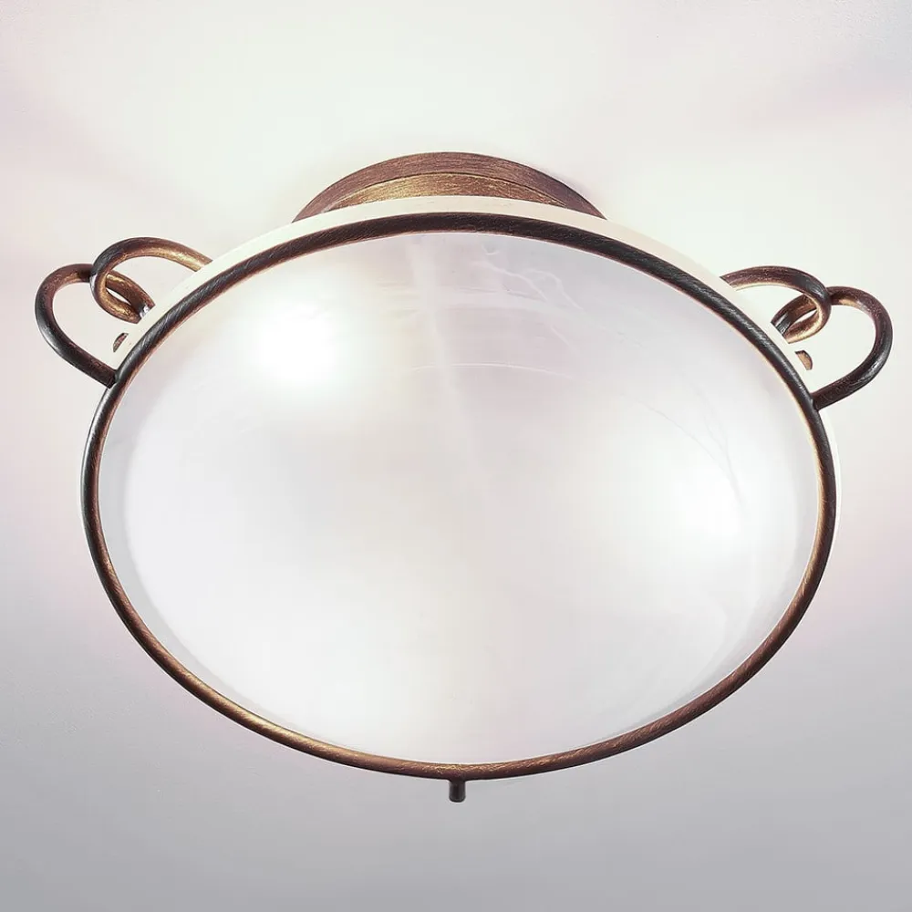 Rustikt udseende loftlampe Rando Rando er en særlig god tilføjelse til landlige interiører med et rustikt præg, da metallet har en antik sølvfarve og er lidt legende med sine blide kurver. Den kuppelformede skærm er i mellemtiden lavet af glas og har en blød alabaststruktur, der minder om tidlig morgentåge, som ofte opfattes som både romantisk og mystisk. En førsteklasses anbefaling til rustikke landhusstile, hvor Rando kan installeres som loftlampe i køkkenet og stuen såvel som i gangen og soveværelset.