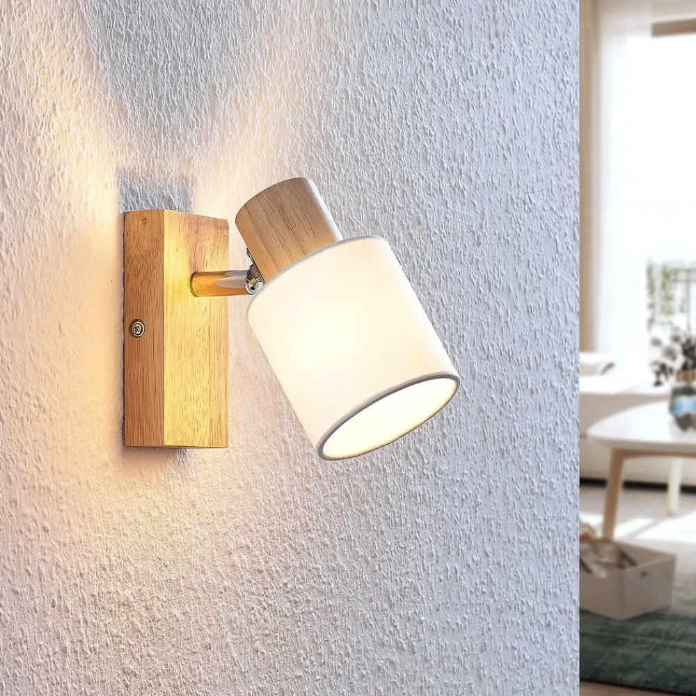 Lindby Spot Wanessa, træ, hvid, E14, 14 cm, justerbar