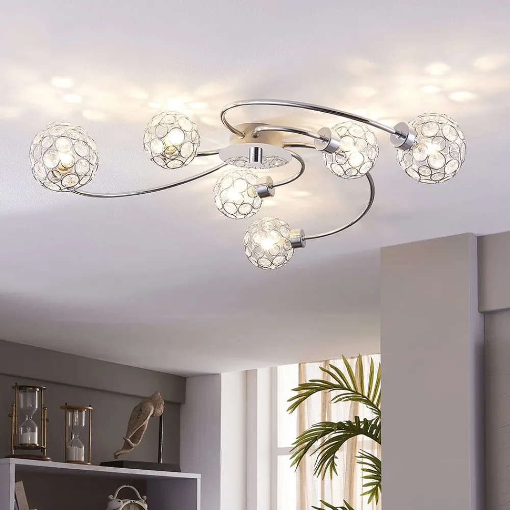 Lindby Loftlamper|Loftlamper>Tyron loftlampe, Ø 65 cm, krom, glas, metal
