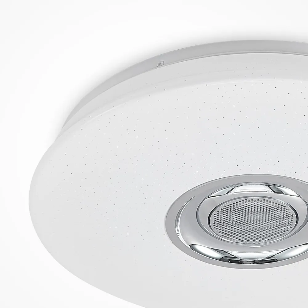 Lindby LED-loftlampe Elpida, højttaler, hvid, Ø 39cm