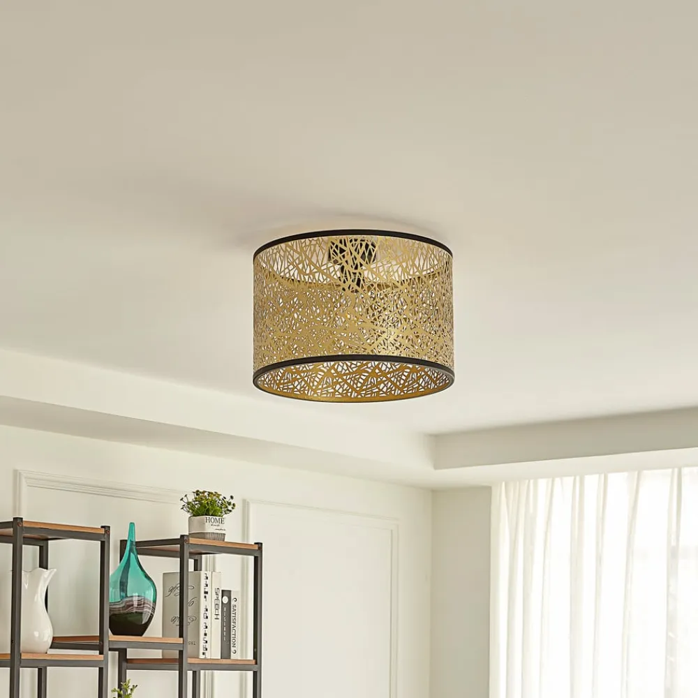 Lindby loftslampe Yonah, guldfarvet, metal, Ø 40 cm, E27