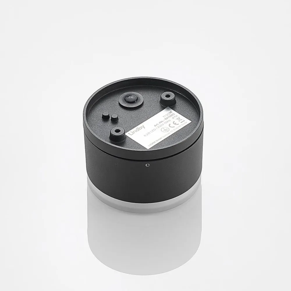 Cylindrisk LED udendørs loftlampe Mathea i sort med hvid diffuser