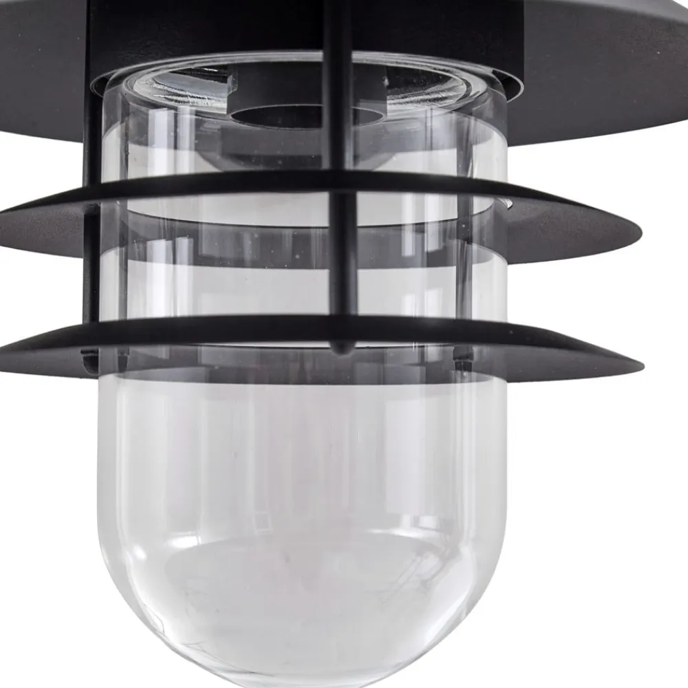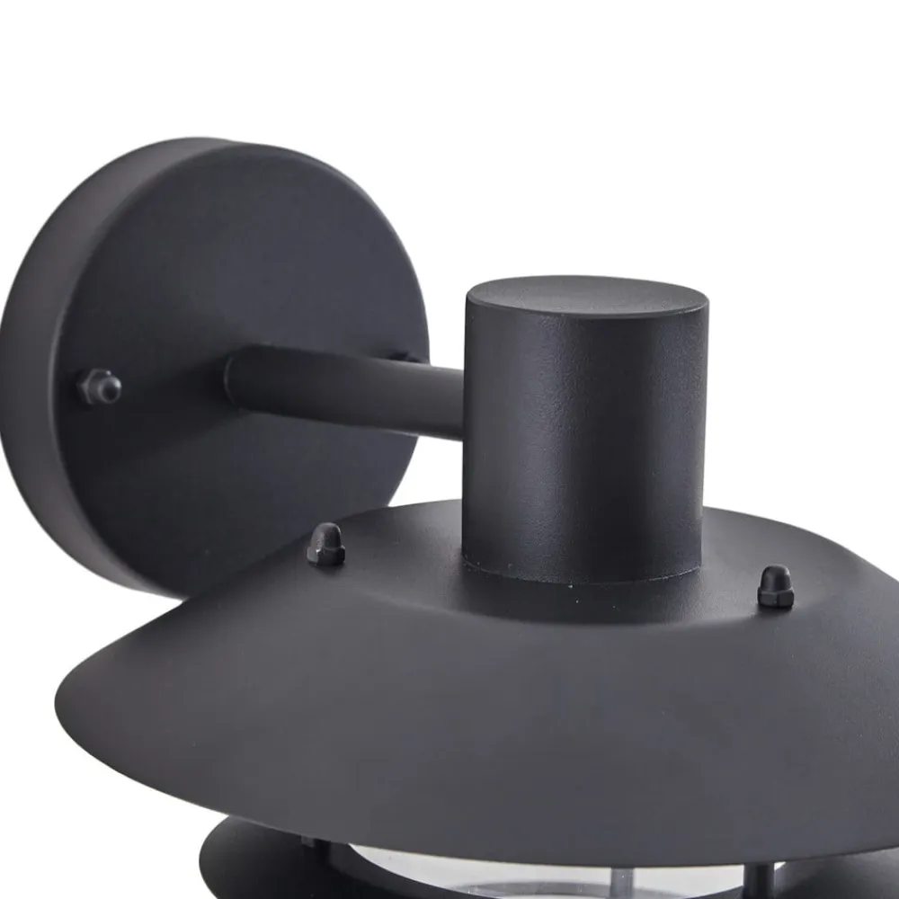 Sort Meliora udendørs væglampe i en tidløs lanterneform Meliora udendørs væglampen er lavet af jern, metal og glas og er designet i en dekorativ lanterneform, hvilket gør den til et smukt blikfang i det udendørs område, selv når den er slukket. Takket være kapslingsgraden IP44 er væglampen ideel til udendørs brug. Meliora kan f.eks. bruges som lyskilde i indgangspartiet, på terrassen eller altanen. Da lyskilden indeni er tydeligt synlig, kan den bruges som en dekorativ pære.