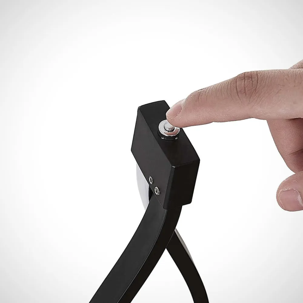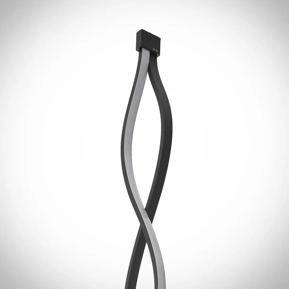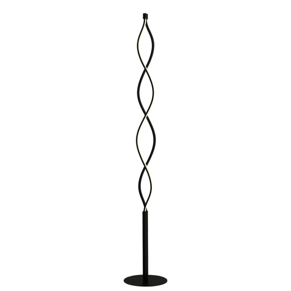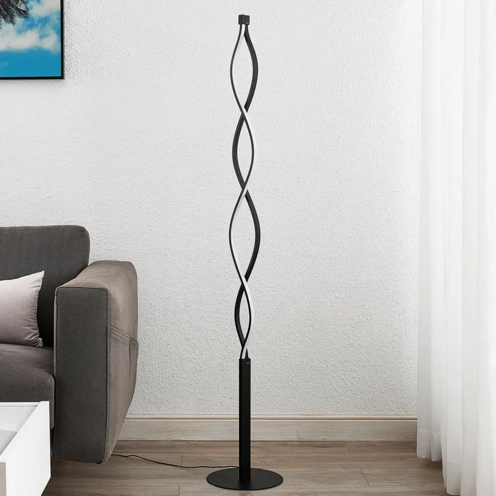Welina LED-gulvlampe med lysdæmperfunktion Welina LED-gulvlampen imponerer med sit moderne design, som er både elegant og kreativt. Rammen på denne lampe er lavet af jern og har en klassisk sort finish. De to lampekroppe rejser sig i bølger, hvilket giver gulvlampen et meget individuelt look. Det varmhvide lys er en fryd for øjet, og lysstyrken på denne smukke lampe kan også justeres ved hjælp af en lysdæmper (knap ved hovedenden).