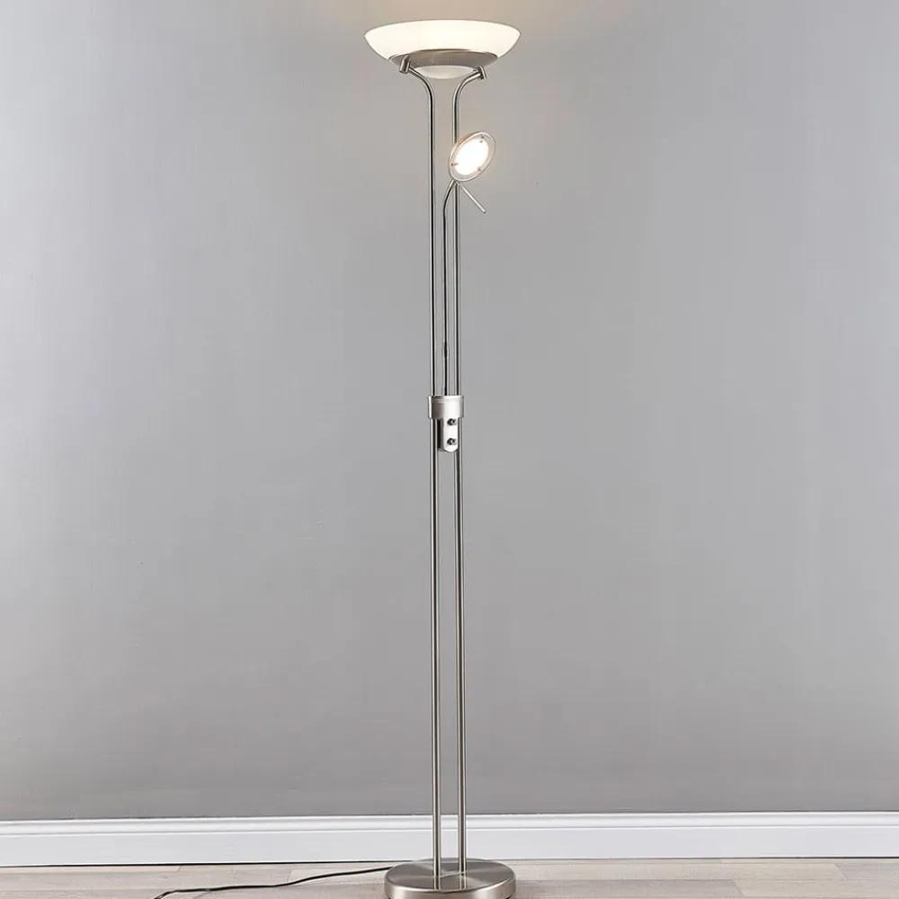Lindby Pendellamper|Gulvlamper>LED-gulvlampe Yveta, nikkelfarvet, metal, dæmpbar