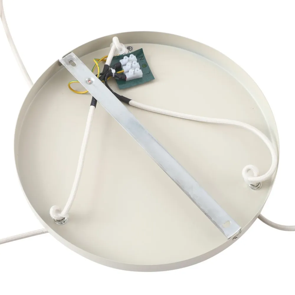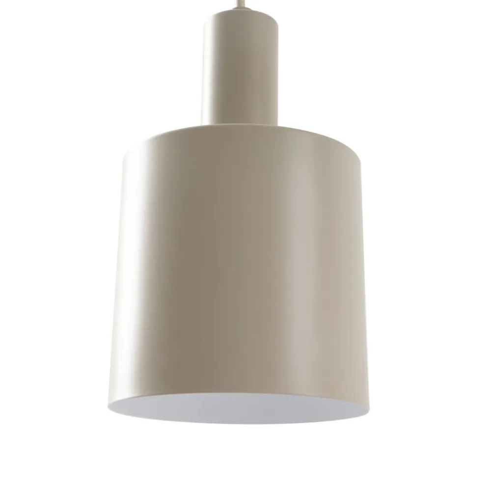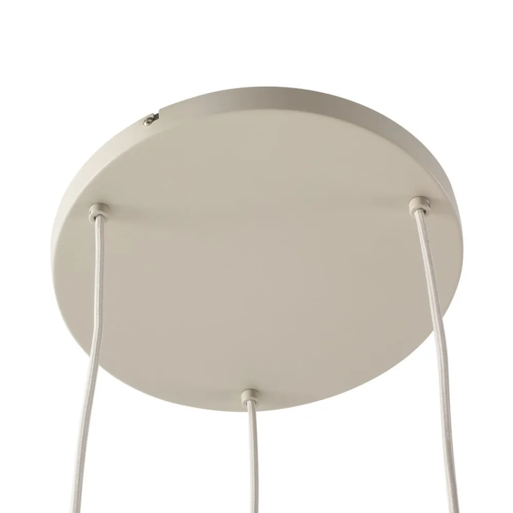 Ovelia 3 lyskilder hængelampe i beige, rund Ovelia hængelampen er ideel til at oplyse et spise- eller stuebord. Den er lavet af jern og består af en rund baldakin og tre skærme. Pendellampen er helt beige i farven og passer derfor diskret ind i mange forskellige omgivelser. Lyset reflekteres af den hvide inderside af skærmene og spotlights mod gulvet. Skærmene kan hænges op fra baldakinen i forskellige højder.