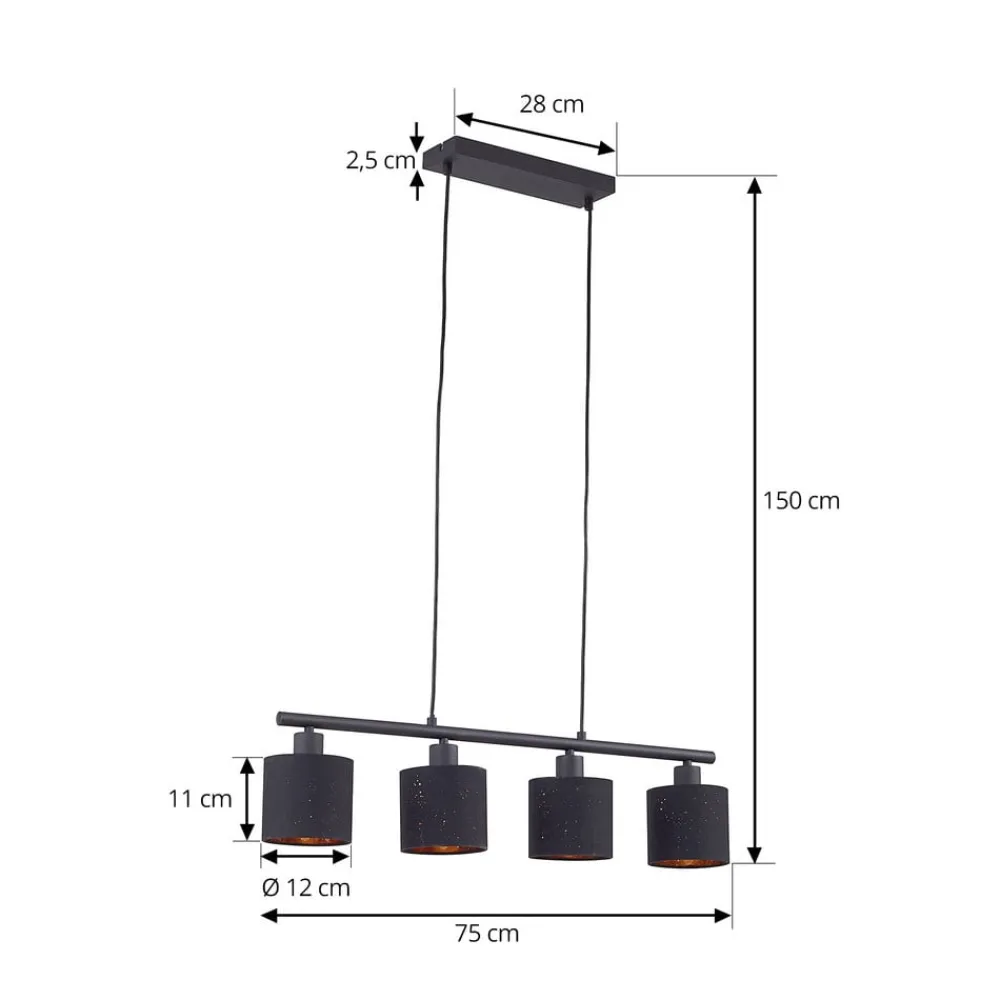 Lindby Pendellamper>pendellampe Vasilia, 75 cm, sort/guld, stof
