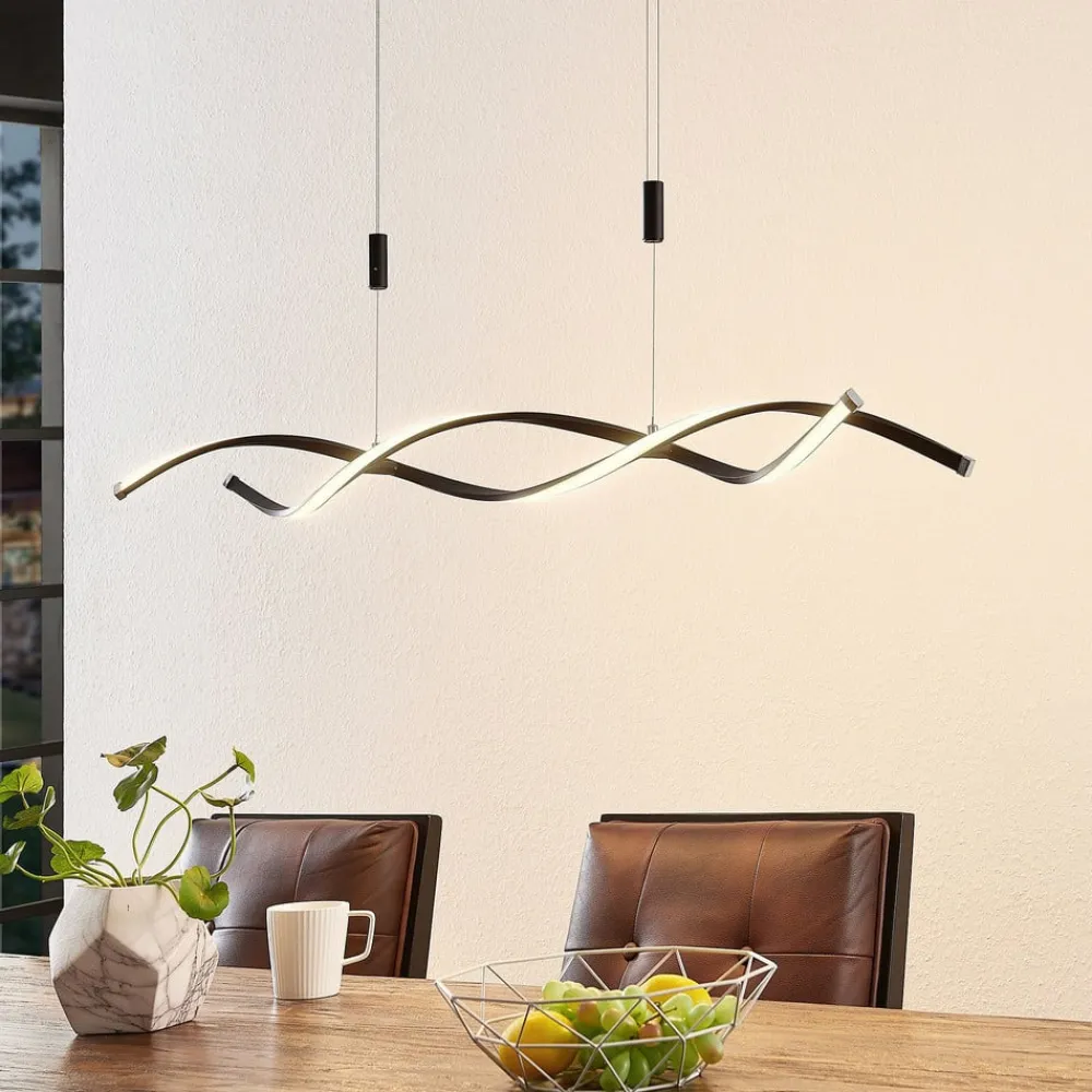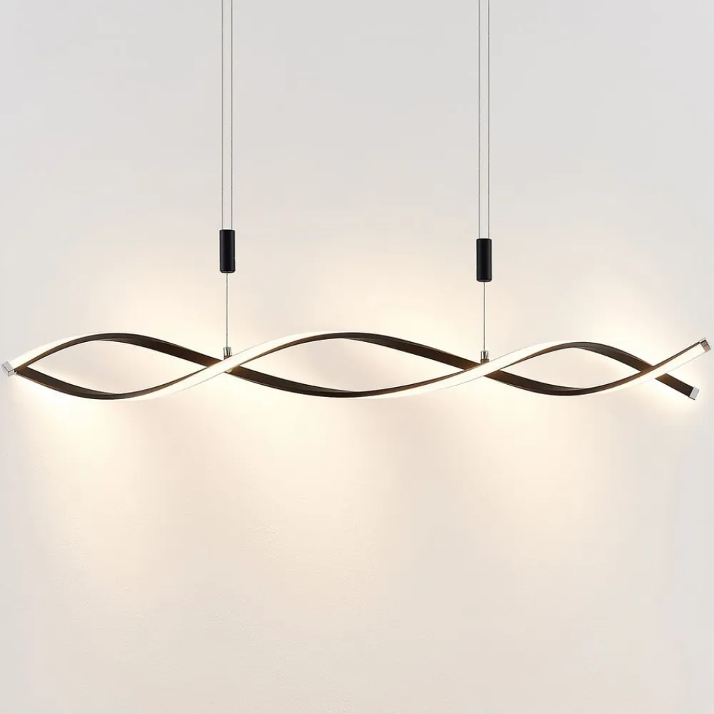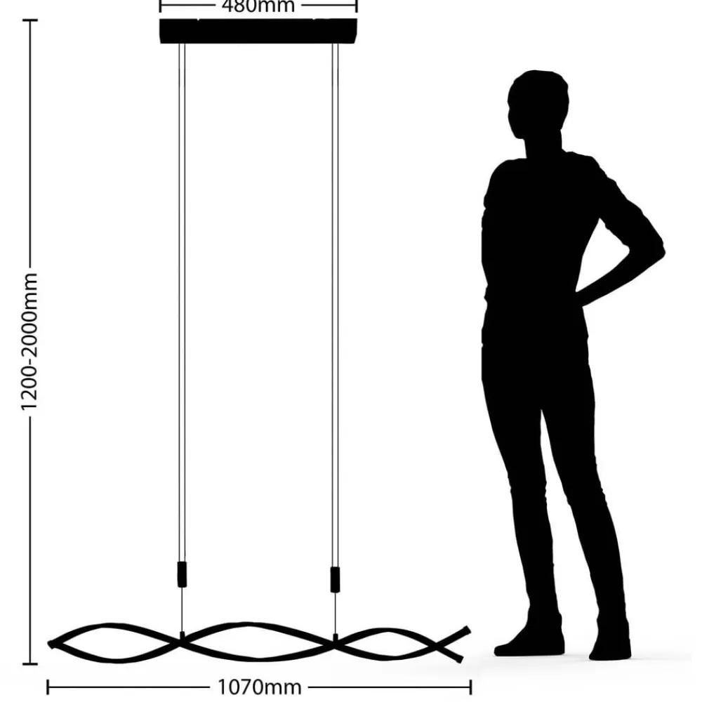 Designorienteret Welina LED-hængelampe, højdejusterbar Denne interessante lampe har et fængslende udseende, der ser vidunderligt ud i opholdsstuen eller over et spisebord. De smukt formede lampekroppe i et spirallook har kraftige, permanent installerede LED’er, der udsender et varmhvidt lys. Højden på ophænget kan justeres i et par enkle trin, fra 120 cm til 200 cm. 3-trins dæmpbar + slukket: Lyset kan tændes og slukkes ved hjælp af vægkontakten. Takket være 3-trins-dæmpningsteknologien kan den også dæmmes til tre forskellige lysstyrkeniveauer ved at trykke på kontakten flere gange: 100%, 50%, 10%.