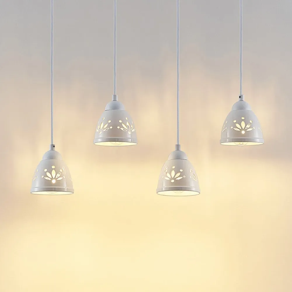 Særlig Pimana vedhængslampe med fire keramiske lampeskærme