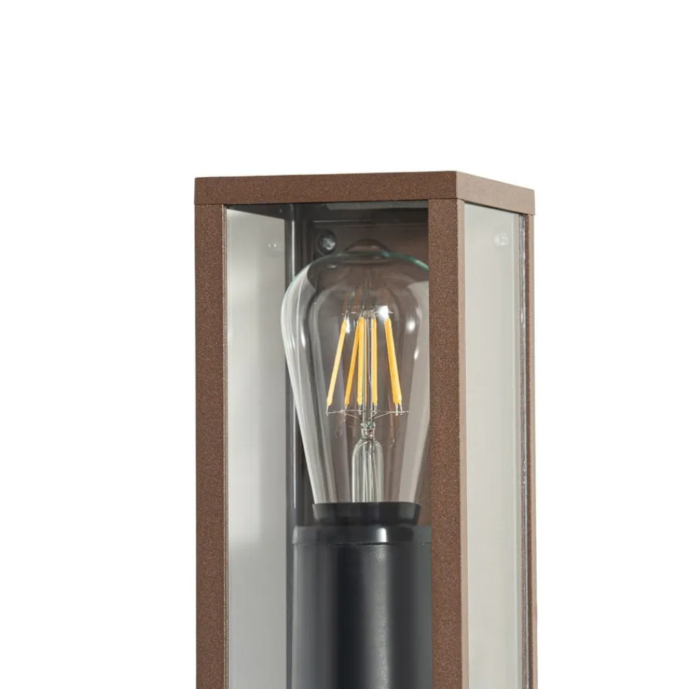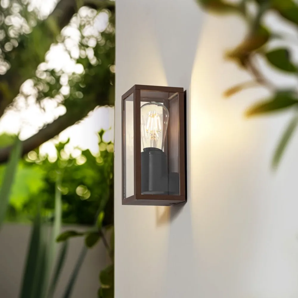 Robigus kantet udendørs væglampe i et rustikt, rustfarvet design Robigus udendørs væglampe kombinerer både moderne og rustikke stilelementer i sit kubiske design, så den passer problemfrit ind i forskellige arkitektoniske koncepter. Med en kapslingsgrad på IP54 er denne lampe specielt designet til udendørs brug og modstår pålideligt støv og vandsprøjt. Robigus udendørs væglampe er derfor en ideel belysningsløsning, der harmonerer med funktionalitet og æstetik.