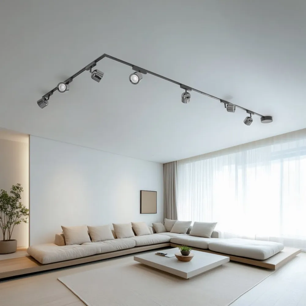 Lumaro-skinnebelysningssystemet er kendetegnet ved sin stilfulde sorte farve og kombinationen af jern, aluminium og plast. Det flade, elegante design passer perfekt ind i moderne boliger. Installationen er hurtig og nem, og takket være lavspændingssystemet er det energieffektivt, miljøvenligt og holdbart.