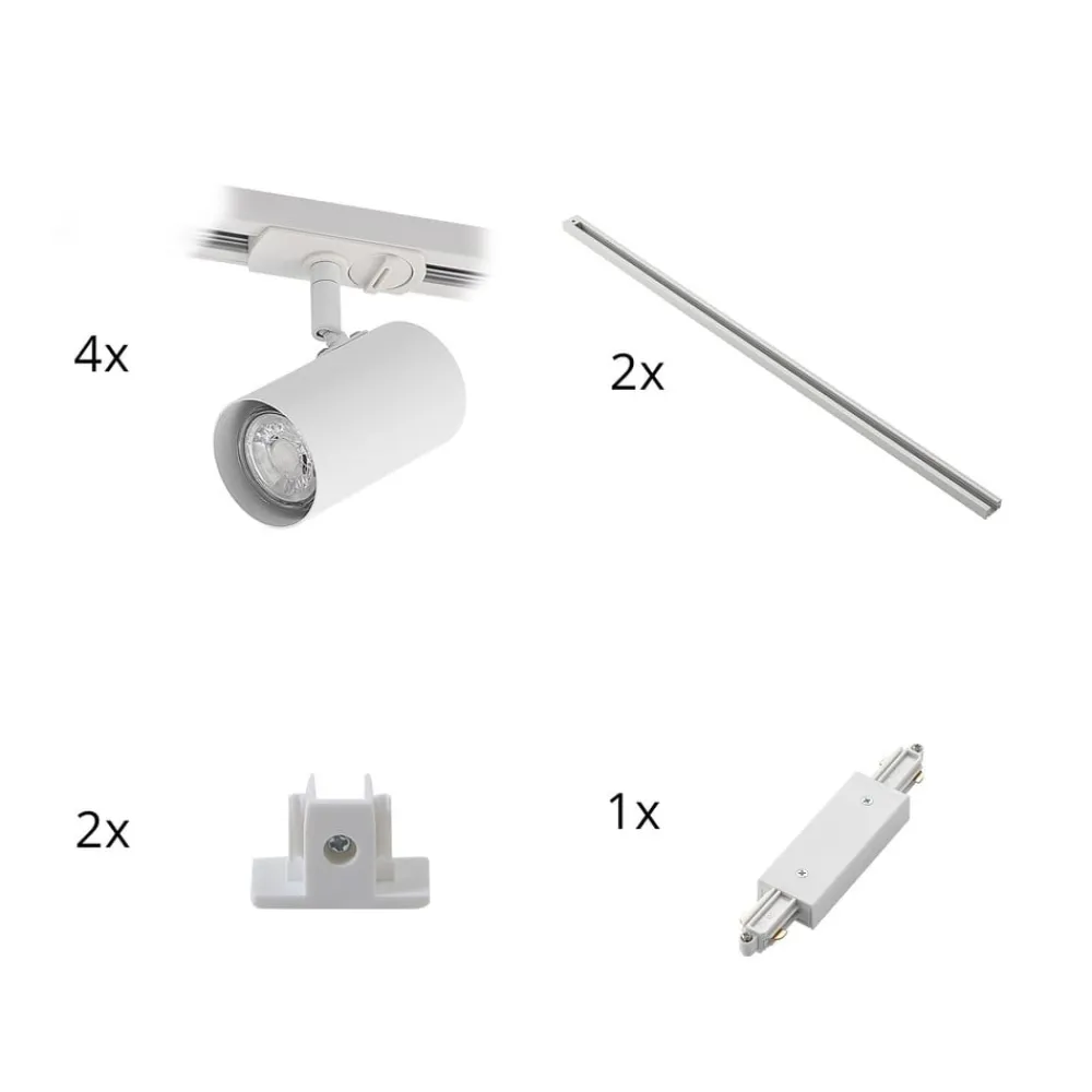 Lindby skinnesystem Linaro, GU10, 4 lyskilder, hvid, Ø 6 cm