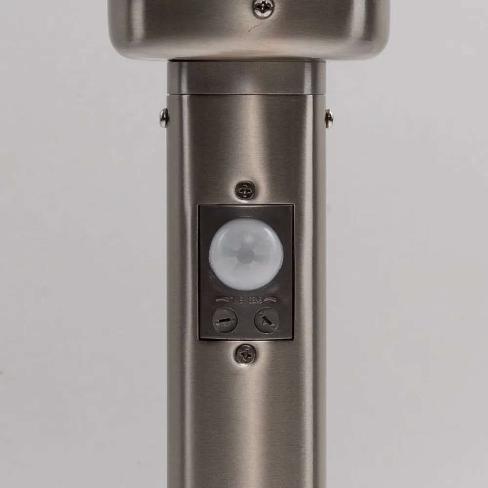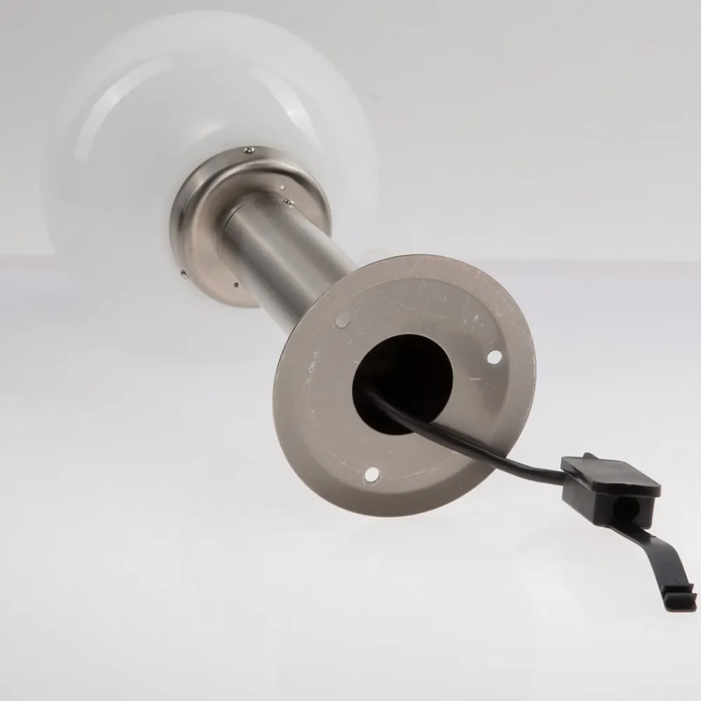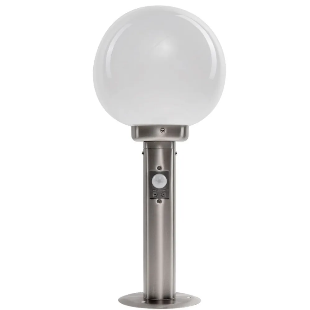Enkel sokkellampe Vedran med bevægelsessensor og hvid kugleformet lampeskærm