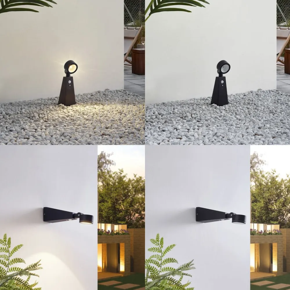 Lindby Solcelle Lampe Med Sensor|Sokkellamper Med Sensor>LED-spotlight Raide, sensor, sort, aluminium