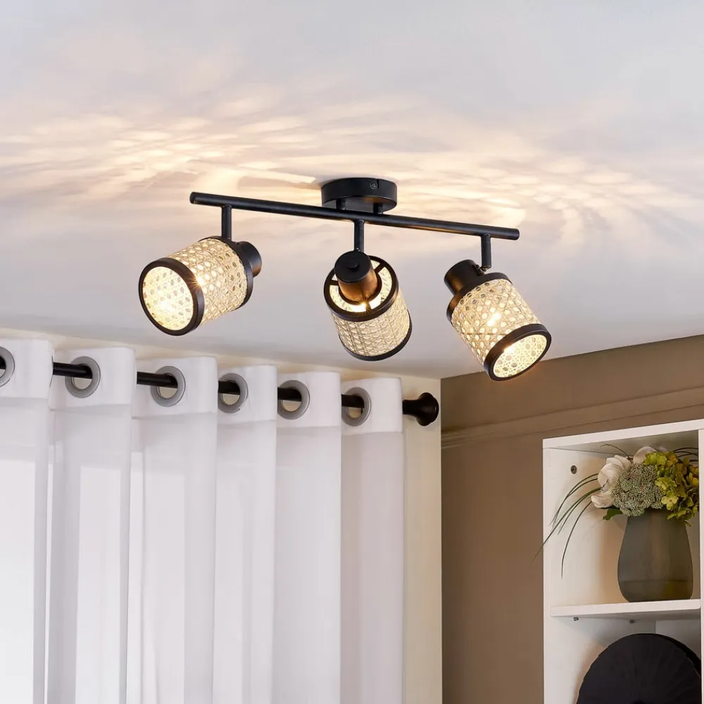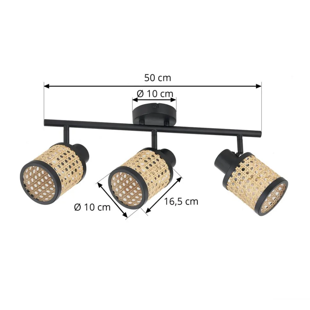 Lindby Spot Yaelle, 52 cm, 3-lys, rattan, sort, E27