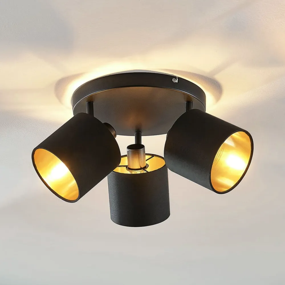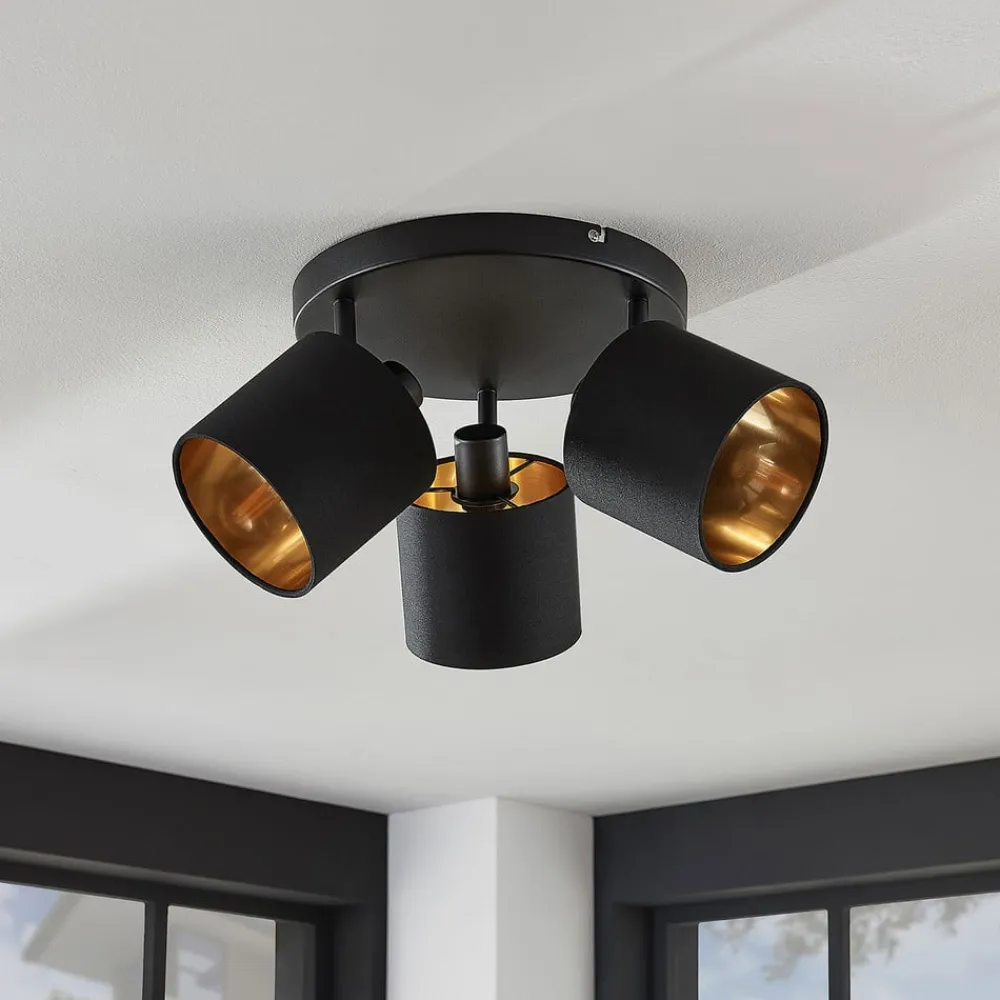 Lindby Spotlights>Loftlampe Vasilia i sort og guld, 3 lyskilder.