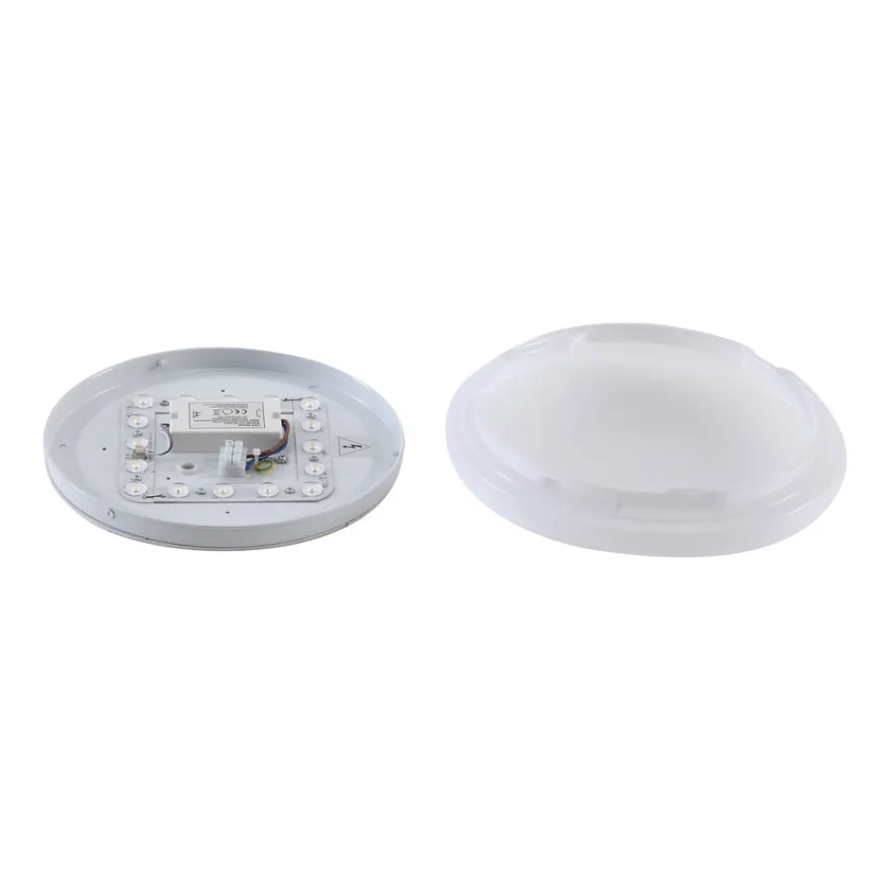 Praktisk LED-loftslampe med bevægelsesdetektor – til udendørsarealer, korridorer, værksteder m.m. Den runde Kirkola LED-loftslampe med plastdiffusor og metalbeslag har to særlige egenskaber: IP44-beskyttelsesgraden gør den velegnet til udendørsarealer eller andre fugtige rum. Den integrerede bevægelsesdetektor er nyttig til passager, carporte, korridorer osv. Tekniske data bevægelsesdetektor: – Registreringsvinkel 86° – Belysningsvarighed 30 s – Rækkevidde 6-8 m – Installationshøjde 3 m – Skumringssensor 15 lux