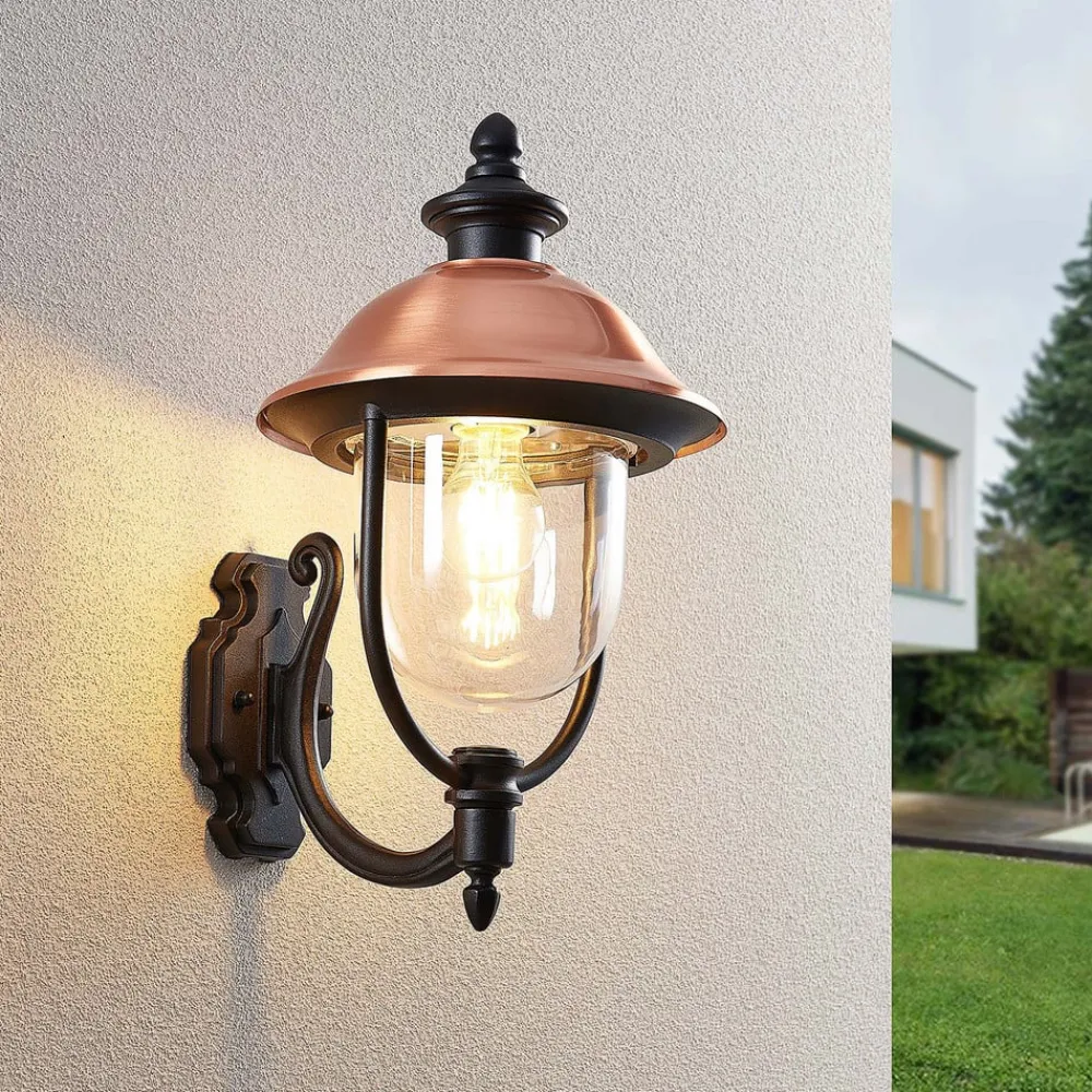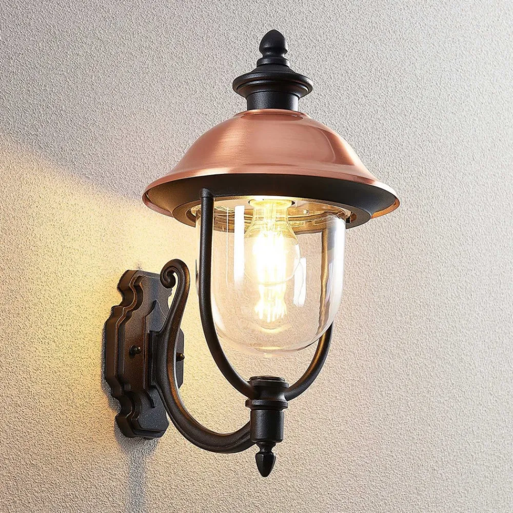 Udendørs væglampe Clint med kobbertag, saltvandsresistent