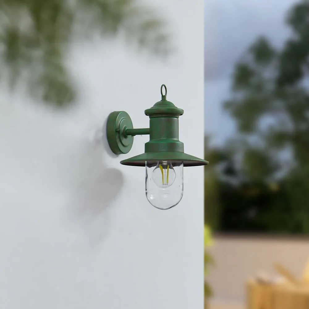 Lindby Terrassebelysning|Væglamper>udendørs væglampe Eloretta, 22 cm, grøn, glas, stål