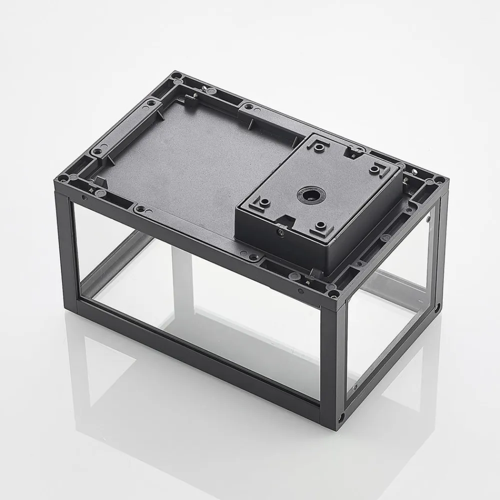 Giavanna kantet udendørs væglampe af aluminium og glas i antracit Giavanna er en markant udendørs væglampe, der skaber iøjnefaldende accenter på husmure. Den har en kubisk lampekrop med glasvægge, bag hvilken der sidder en E27-fatning. Denne fatning kan udstyres med passende lyskilder, så lysintensiteten og lysfarven kan tilpasses personlige behov. Den udendørs væglampe Giavanna formår at oplyse et hus og et udendørs område perfekt, selv i mørke. Den kan kombineres med andre lamper i serien efter behov.